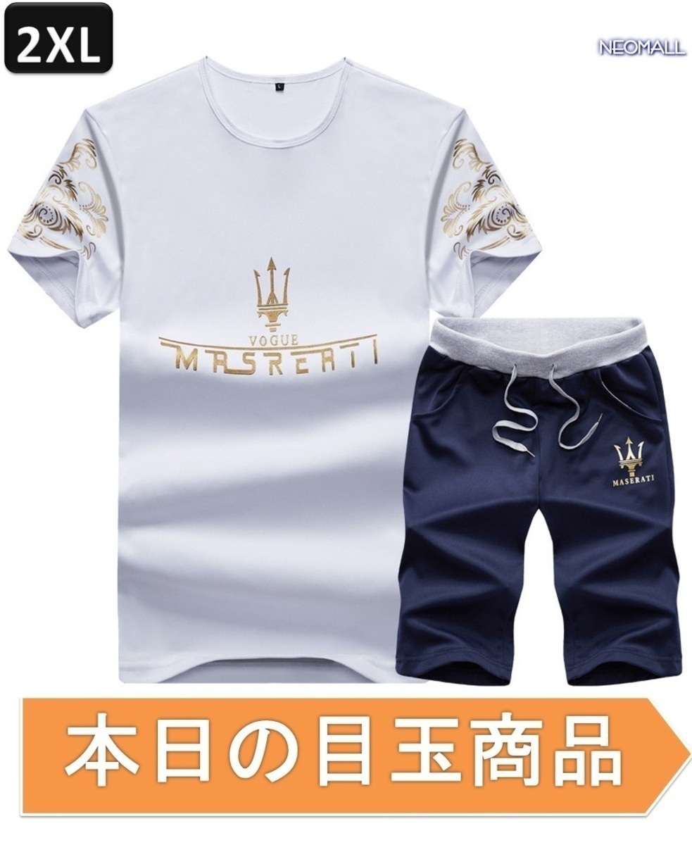 ☆今日の目玉商品☆ジャージ 上下 セット 半袖 部屋着 ルームウェア スポーツウェア セットアップ ホワイト×ネイビー 2XLサイズ 【355】