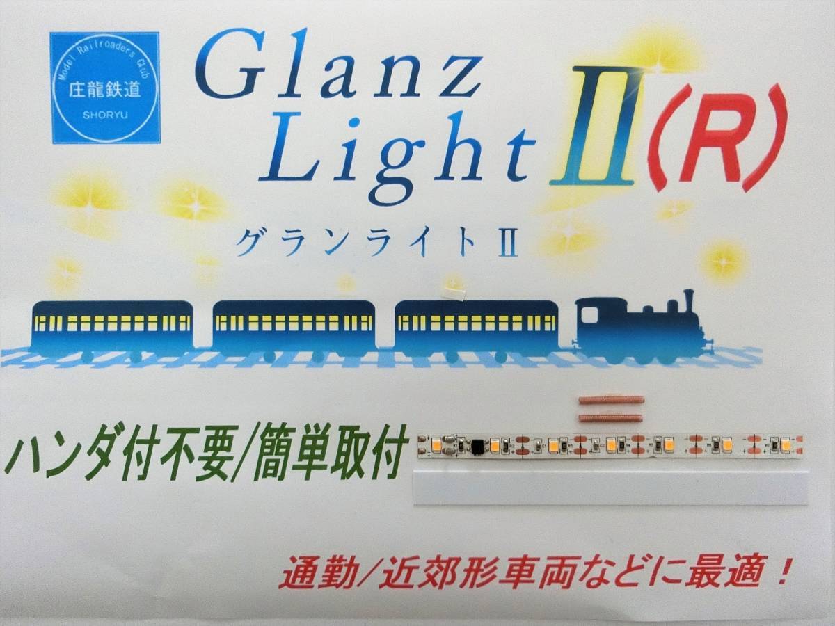 Nゲージ車両用新LED室内灯グランライトⅡ-R(ハンダ付不要/簡単取付)です。TOMIX/MICOACEの車両に取付できます。室内灯ユニットは幅8mm,厚みは最大1.5mm,LEDは1.0mm,長さ126mmでLED7個です。LEDは画像の通りでカットでき,通勤/近郊形などの車両も車端まで均一に綺麗に点灯いたします。詳しい写真入り説明書が同封しております。取付は付属の集電スプリングを指で摘まんで金具に嵌めるだけです。直接またはプラ板に貼って屋根裏に貼るか,またプラ板に貼って床下にセットしても出来ます。1両あたりの内容は室内灯ユニット(7LED) x 1 集電スプリング x 2, プラ板 x 1,最大消費電流は20mA/1両あたり。チラツキ軽減コンデンサーを2個実装しております。点灯色は白色/昼光色になります。スタンダードのコントローラーでも低速から点灯いたします。