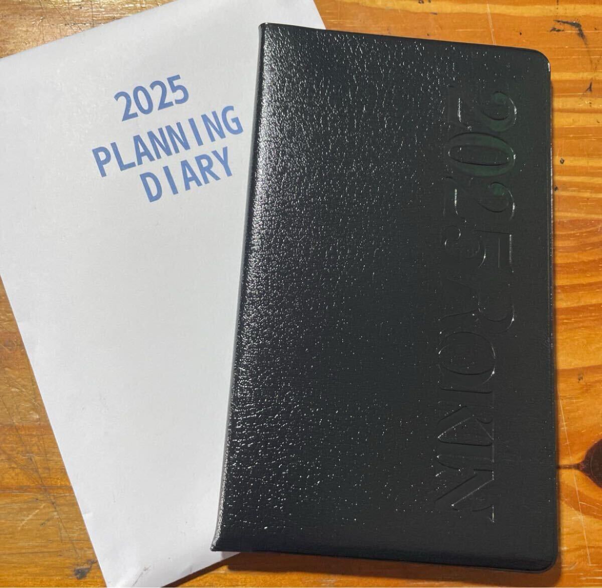 新品未使用 ブラック表紙 シンプル 2025年ろうきん手帳です。
