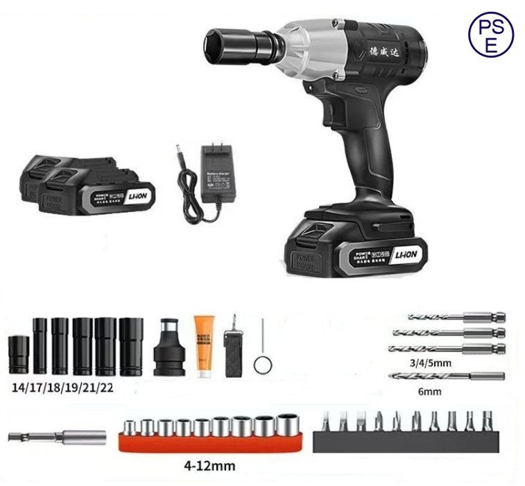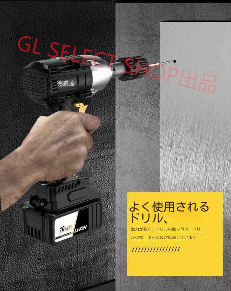 電動インパクトレンチ 600N.m 多点セ ット ー1台4役タイヤ交換 バッテリー併用電動ドリルドライバー セット 電池2本 (D113)