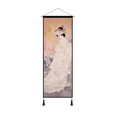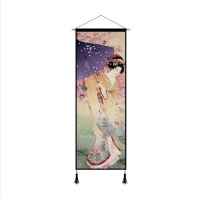 高級感満載!玄関背景布アート寝室ベッドサイド壁装飾画浮世絵仕女図掛絵和風店舗 4点セットです 45*120cm 未使用