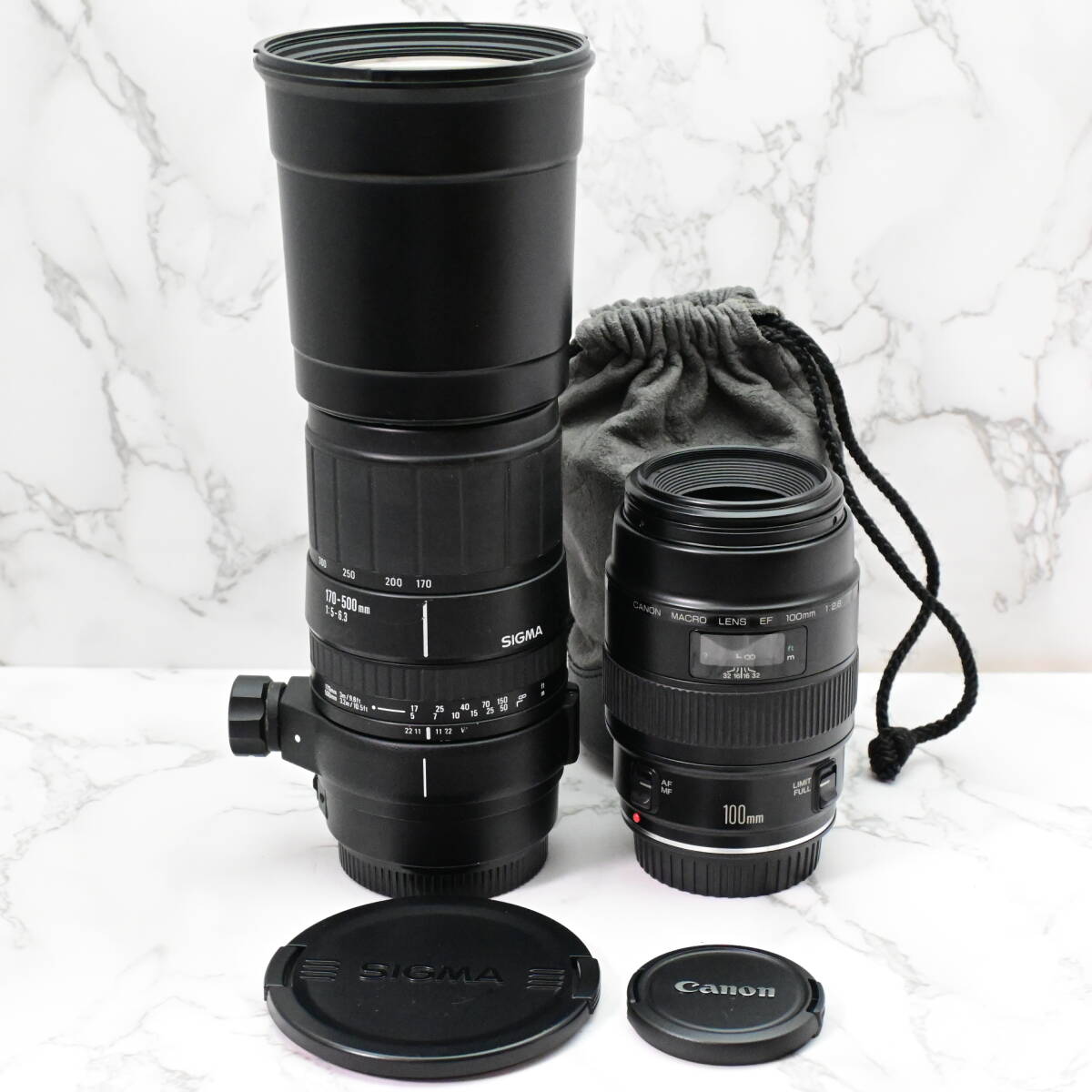 1017[E662][F997A] シグマ SIGMA APO 170-500mm F5-6.3 キヤノン用 Canon EF 100mm F2.8 MACRO レンズ2個セット