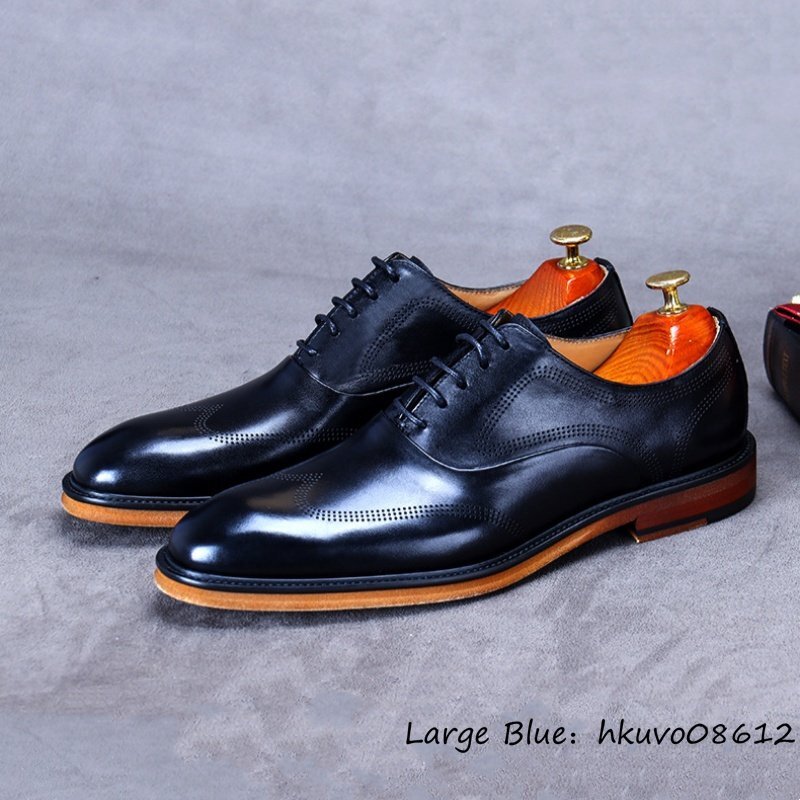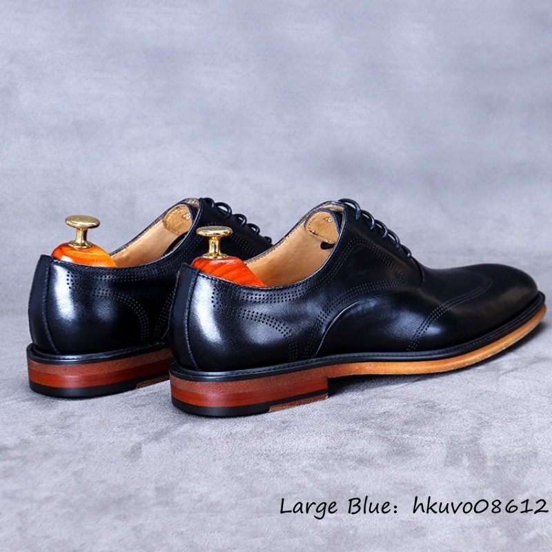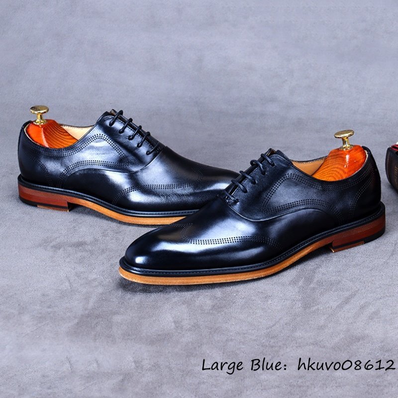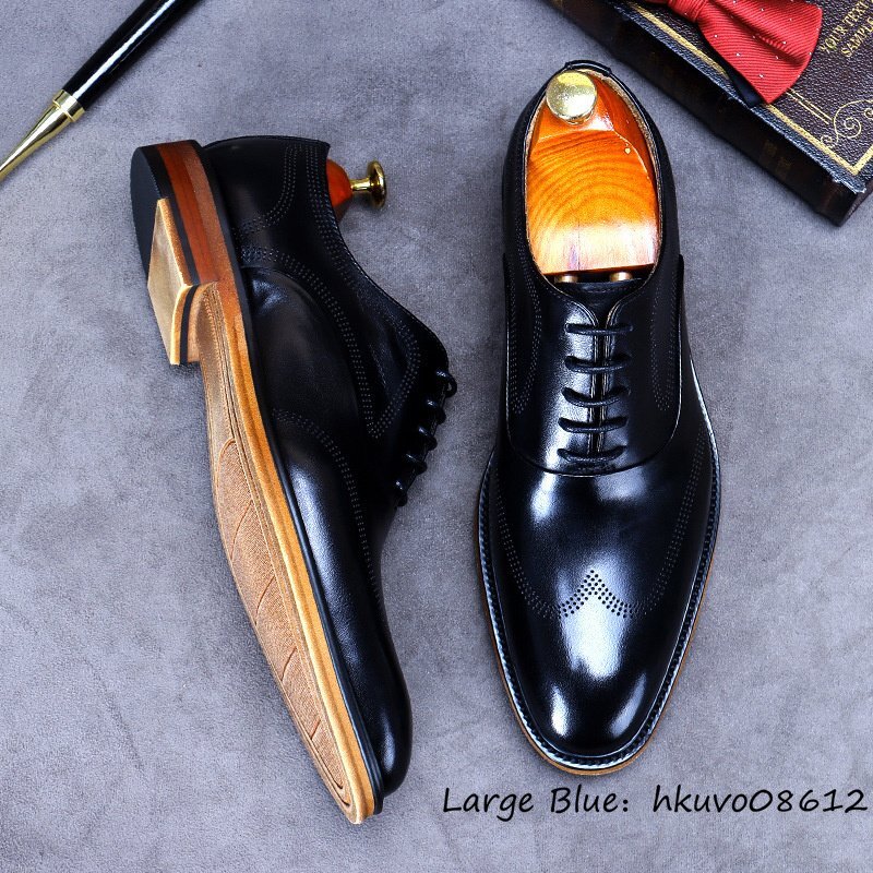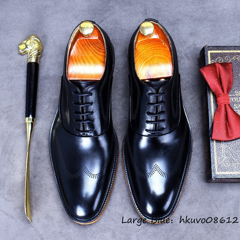 定価10万超★レザーシューズ 本革 ドレスシューズ 職人手作り イギリス風 ビジネスシューズ 紳士靴 革靴 高級牛革 宴会 ブラック 24.5cm