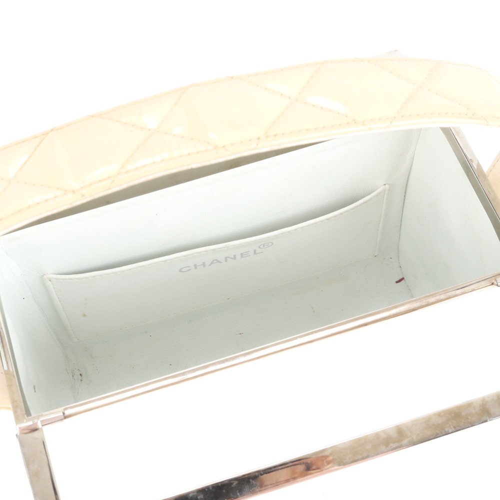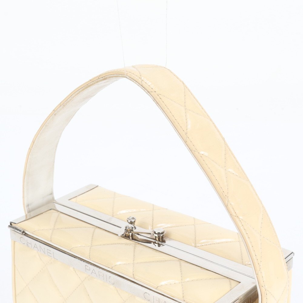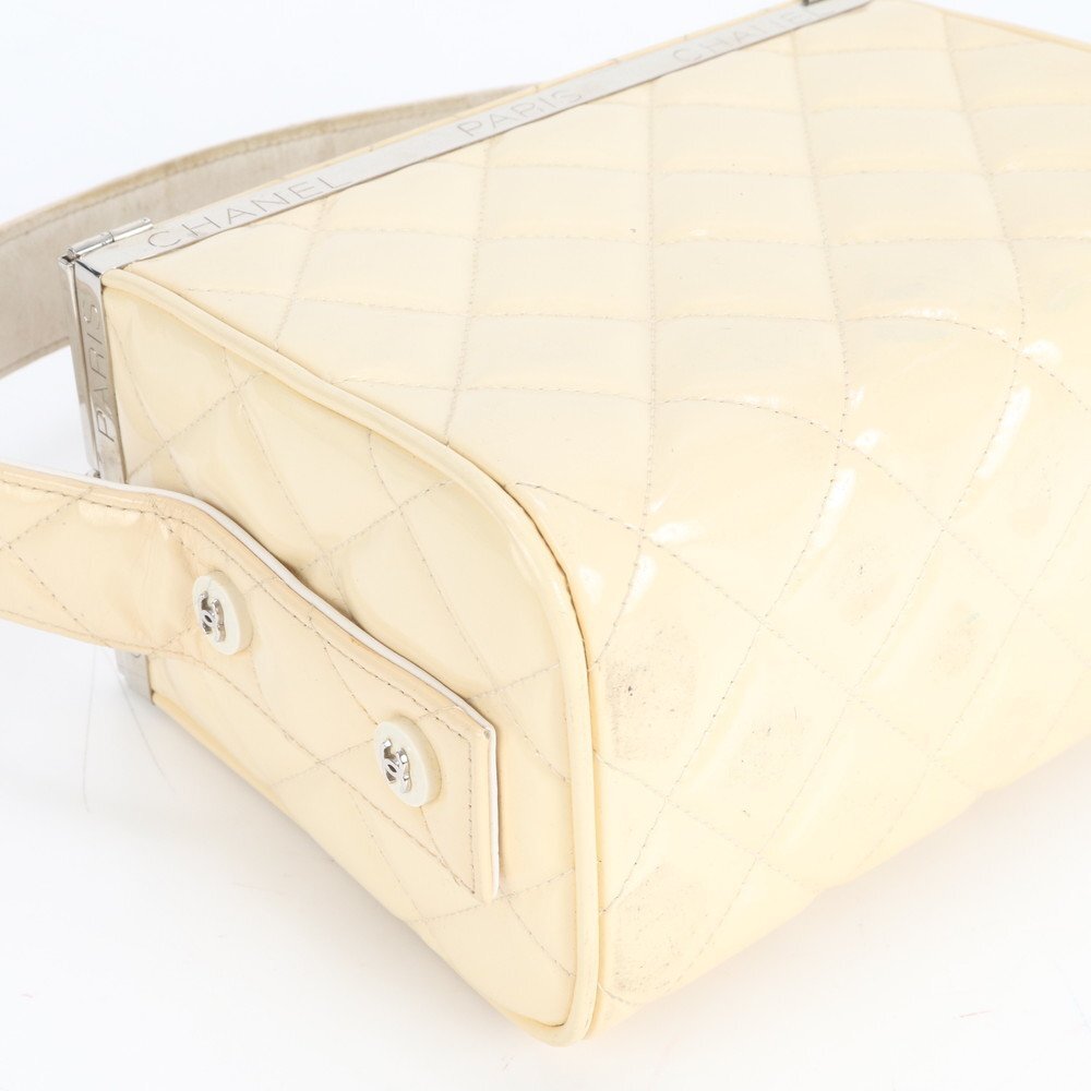 1円■美品■シャネル■マトラッセ パテント レザー バニティ ハンドバッグ トート ベージュ シルバー 金具 レディース VEE CT36-6