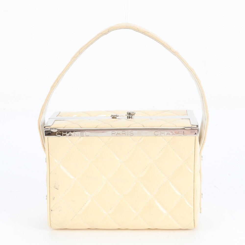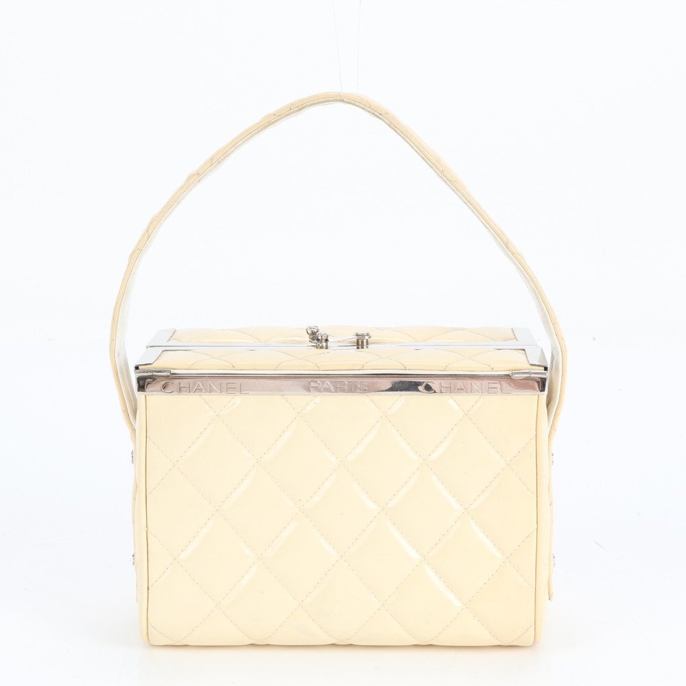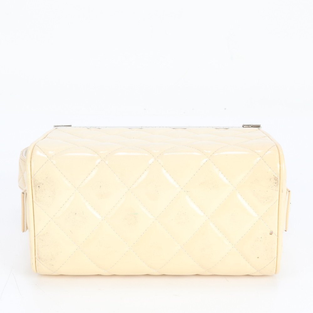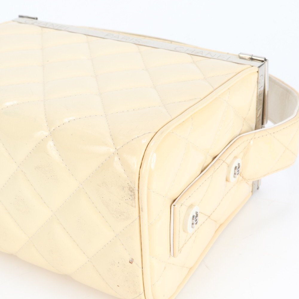 1円■美品■シャネル■マトラッセ パテント レザー バニティ ハンドバッグ トート ベージュ シルバー 金具 レディース VEE CT36-6