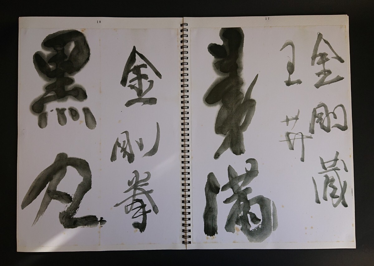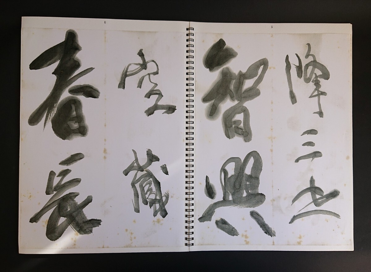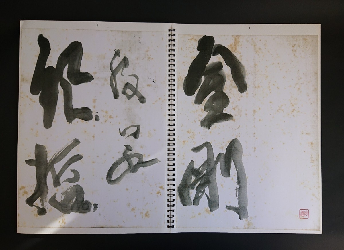 奎星会関係者に頒布した折帖臨書の一つ。原本をカラーコピーしたものをスケッチブックに貼ってあります。