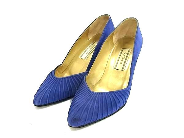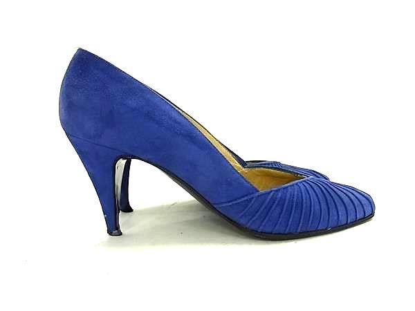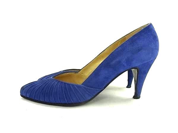 GIANNI VERSACE ジャンニ ヴェルサーチ スエード ヒール パンプス サイズ 34 1/2 (約21.5cm) 靴 シューズ レディース ブルー系 DK5297