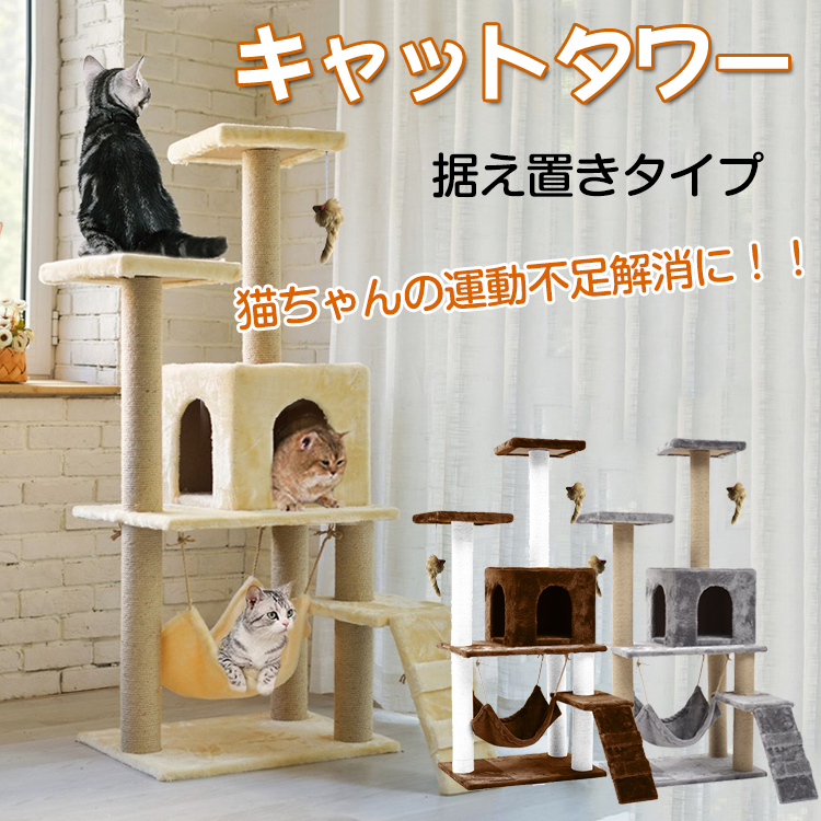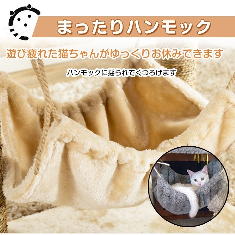 送料無料 キャットタワー 据え置き型 爪とぎ 麻紐 省スペース ハウス 運動不足 ストレス解消 ハンモック おしゃれ ペット 猫用品 pt027