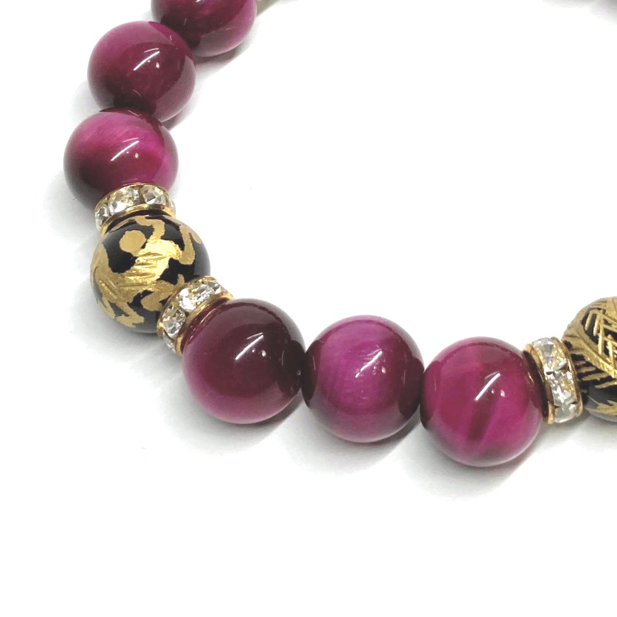 四神獣金彫オニキス×ピンクタイガーアイ 12mm パワーストーン ブレスレット 天然石 青龍 白虎 玄武 朱雀 運気上昇 開運 金運 お守り G