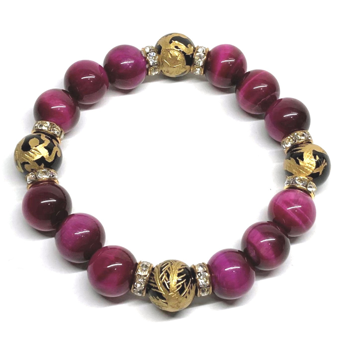 こちらは、四神獣金彫オニキとピンクタイガーアイを組み合わせたパワーストーンブレスレットです。四神獣は、中国の伝説で4つの方向(東西南北)を守護する神聖な神。四神獣、厄災から身を守り、多くの運気を呼び込むと言われております。石大きさは程よくインパクトのある12mm玉で内周 約17cmです。 数に限りがございますので気になる方はお早めにどうぞ。