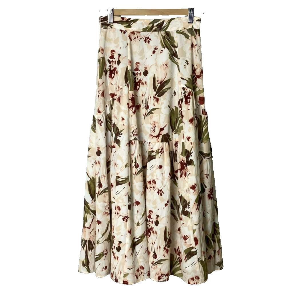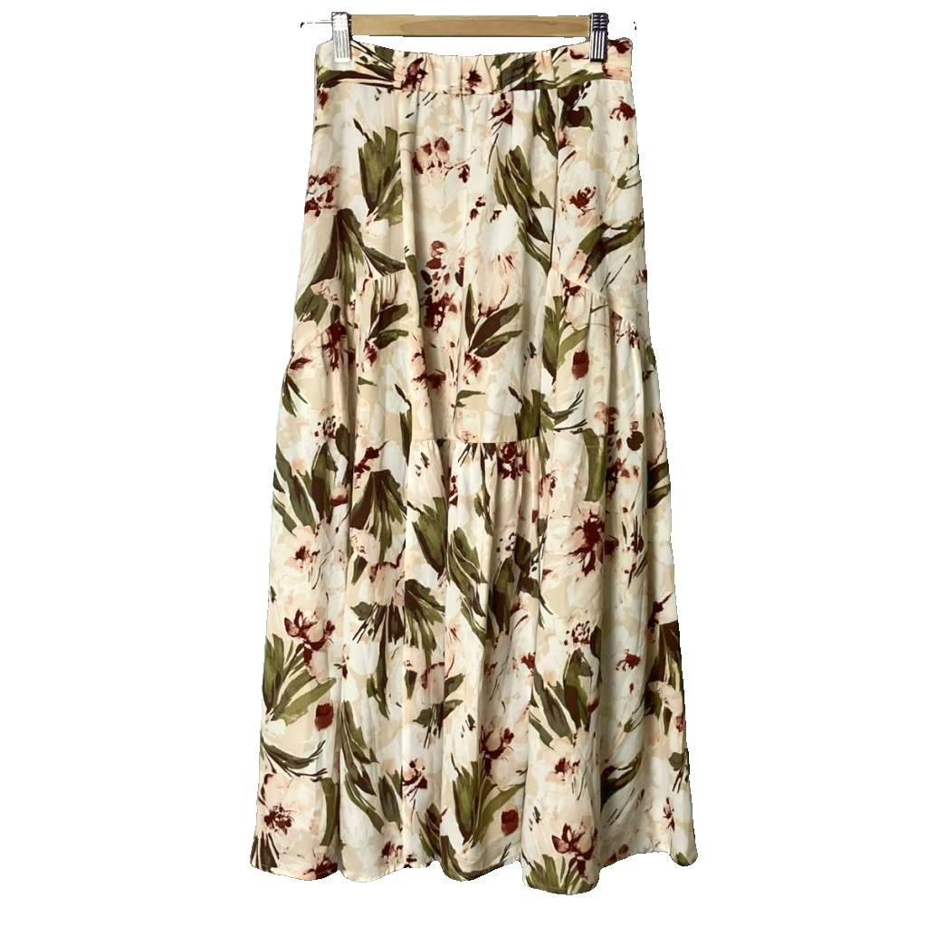 ナチュラルビューティーベーシック NATURAL BEAUTY BASIC 水彩ボタニカルフラワースカート 花柄 ロング丈 フレアスカート M アイボリー 017-4120544