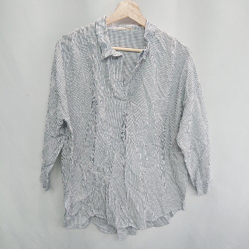 ◇ Samansa Mos2 サマンサ モスモス ストライプ柄 長袖 シャツ サイズF グレー レディース E