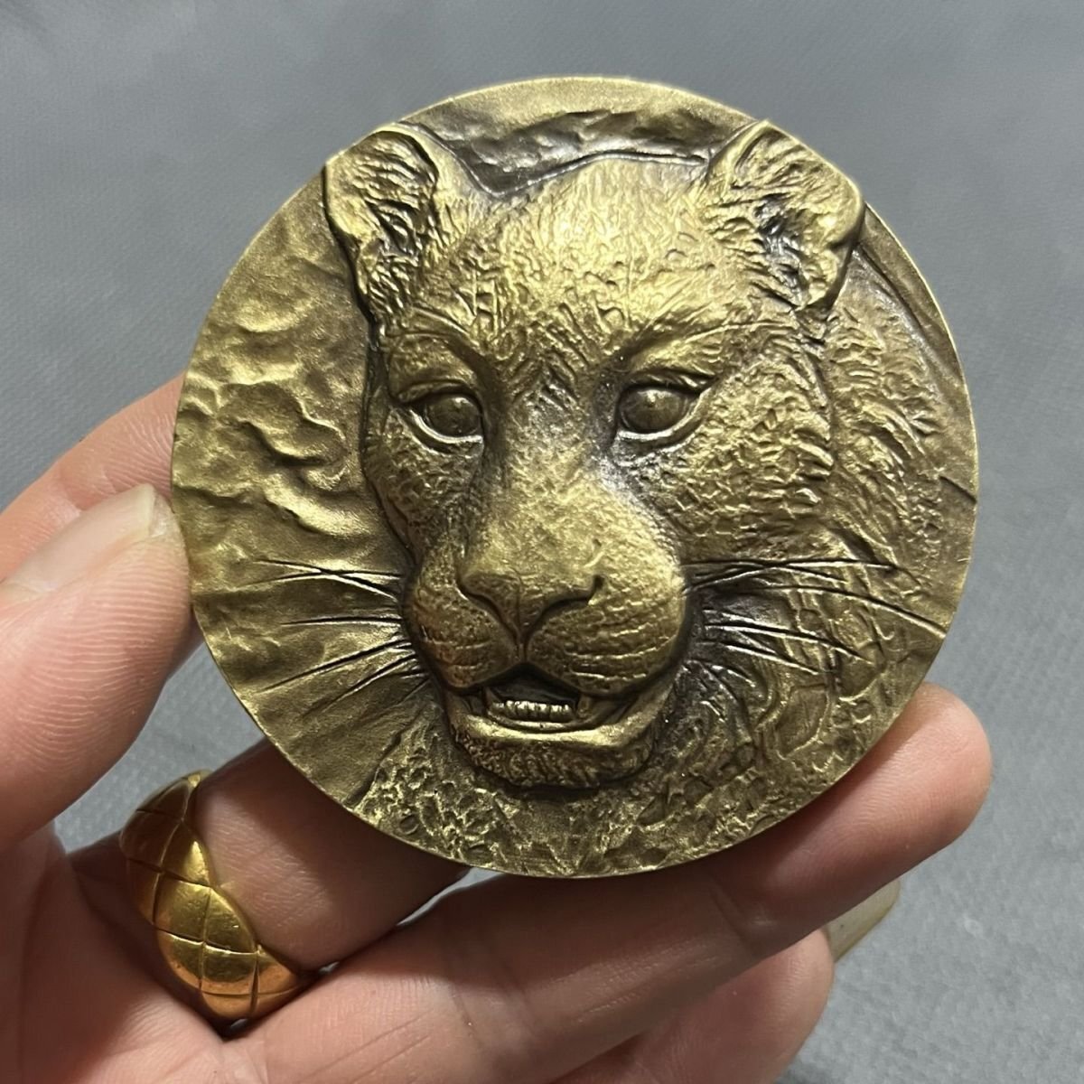 極美品 彫刻 豹 レオパード メタル 真鍮製 純銅 お皿 手作り 工芸品 鑑賞 置物 観賞 ZH1790