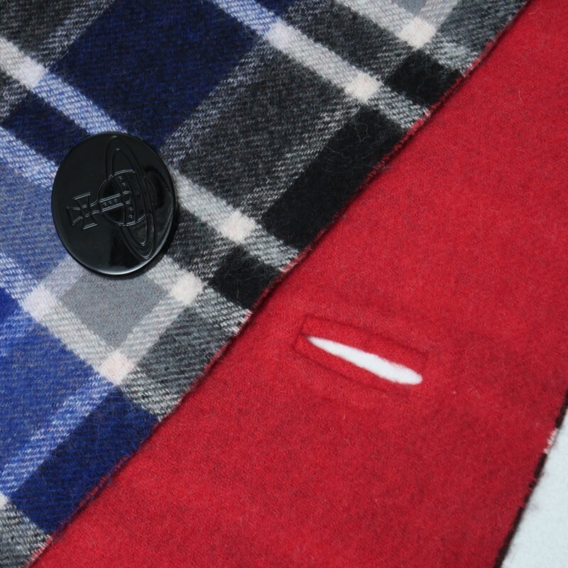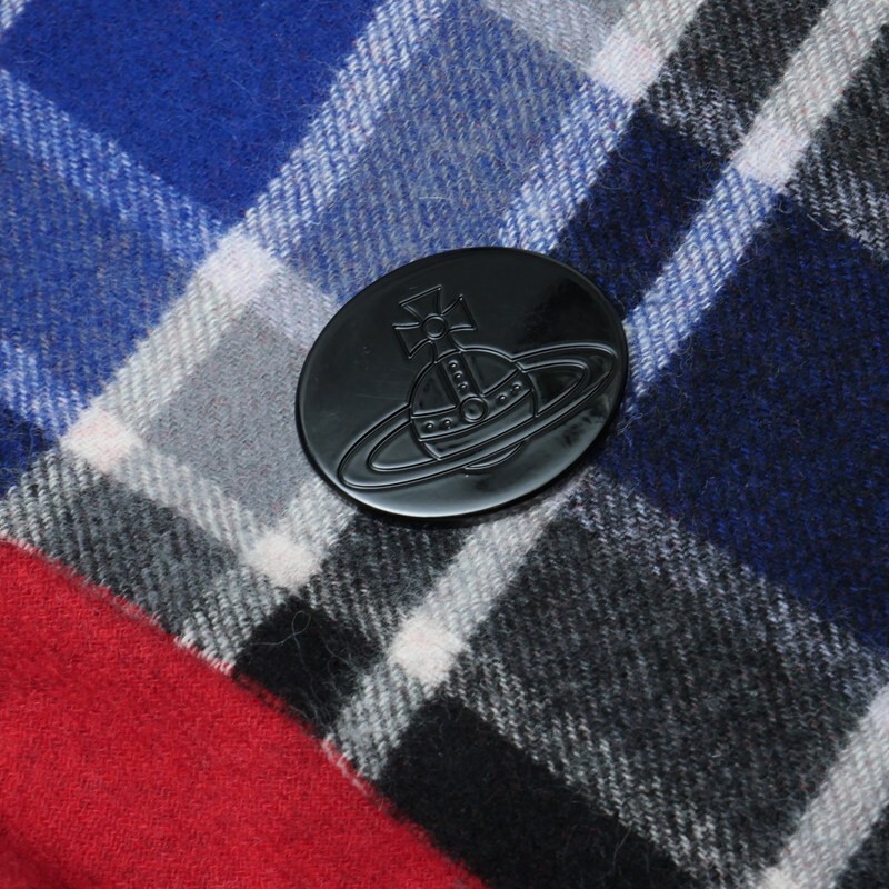 | MI4225*未使用 Vivienne Westwood ヴィヴィアンウエストウッド リバーシブル ウールストール ショール ケープ チェック柄×無地 オーブ | |||