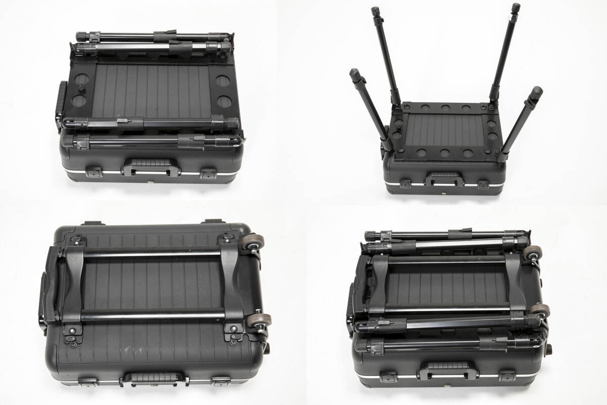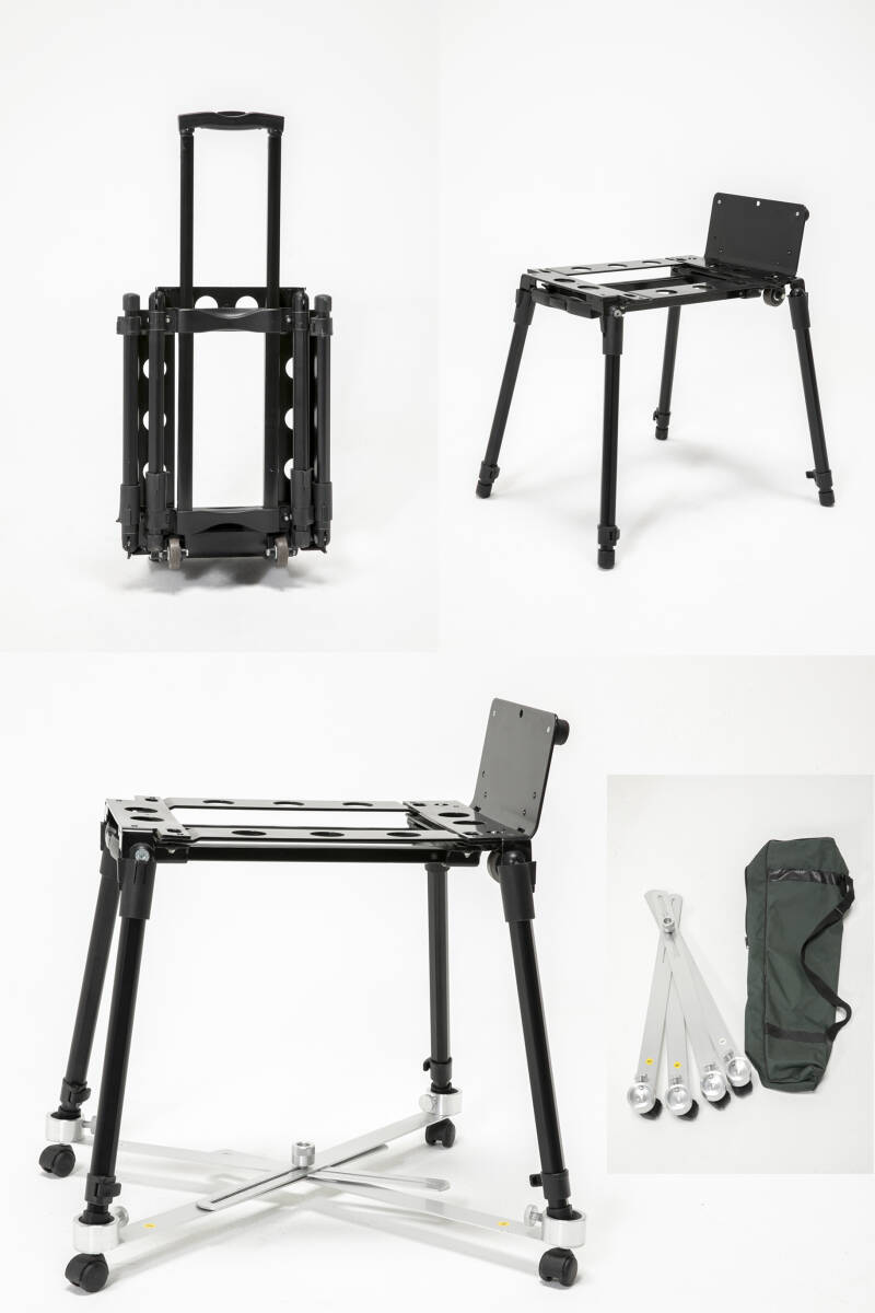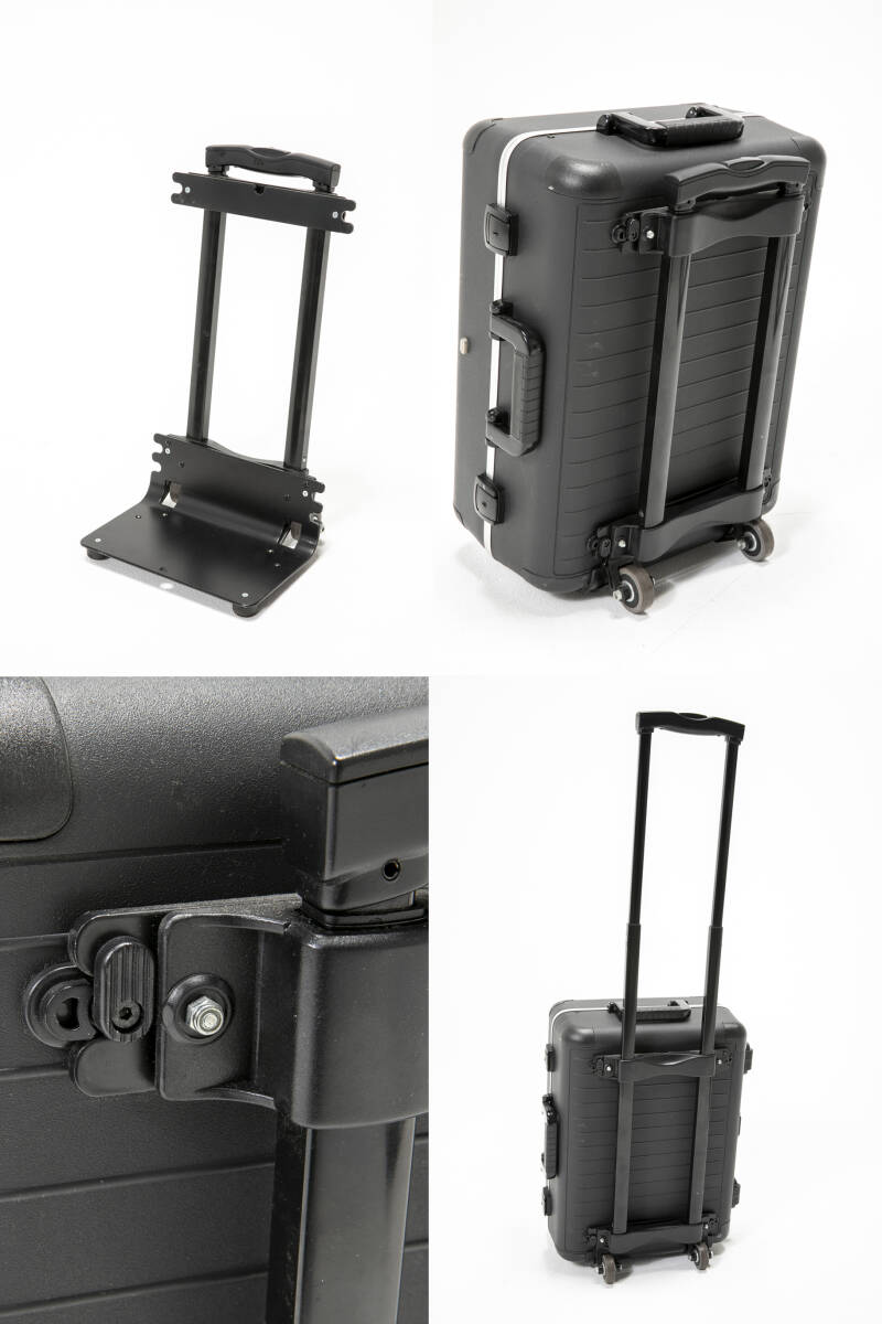 脚とローラー付き外寸:52x40x30cmパソコンとカメラ、レンズ、アクセサリーなどを入れられるように設計されています。ケース単体でも(画像3番)パソコン台としても(画5番)