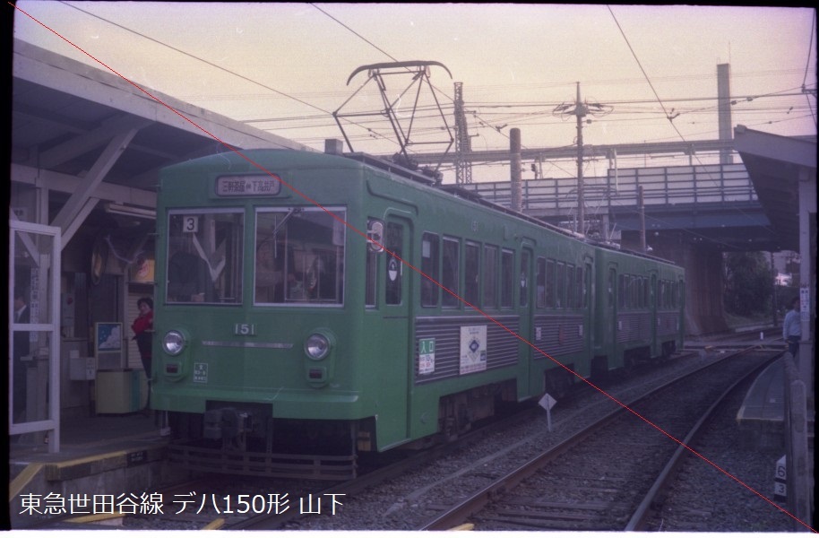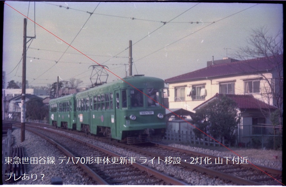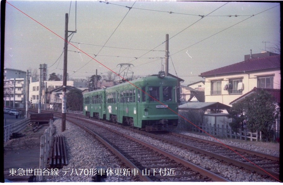 鉄道写真 ネガ 35mmカラーネガフィルム 平成初期の東急電鉄 世田谷線 70形車体更新・ライト移設前&後、80形ライト移設後、150形 5コマ