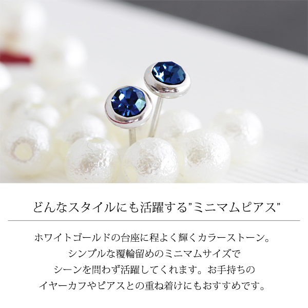 新品/ピアス/K18GP/サファイア/小さい/小さめ/シルバー/18金/ホワイトゴールド/レディース/両耳/シンプル/CZ/ダイヤ/カラー/青/WG