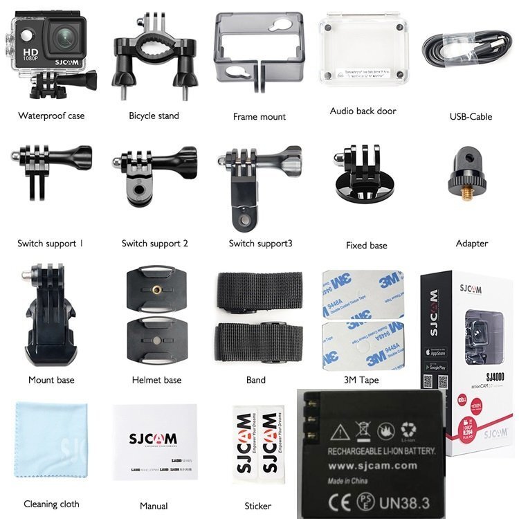 ◆SJCAM 正規品 SJ4000 アクションカメラ PSEマーク取得 2インチ液晶 12MP 1080P録画 防水ケース付き FHDスポーツカムコーダー バーストモード TV出力 WDR ループ録画対応 SJ4000
