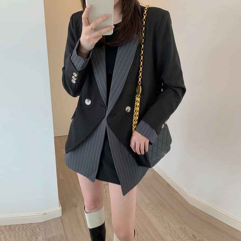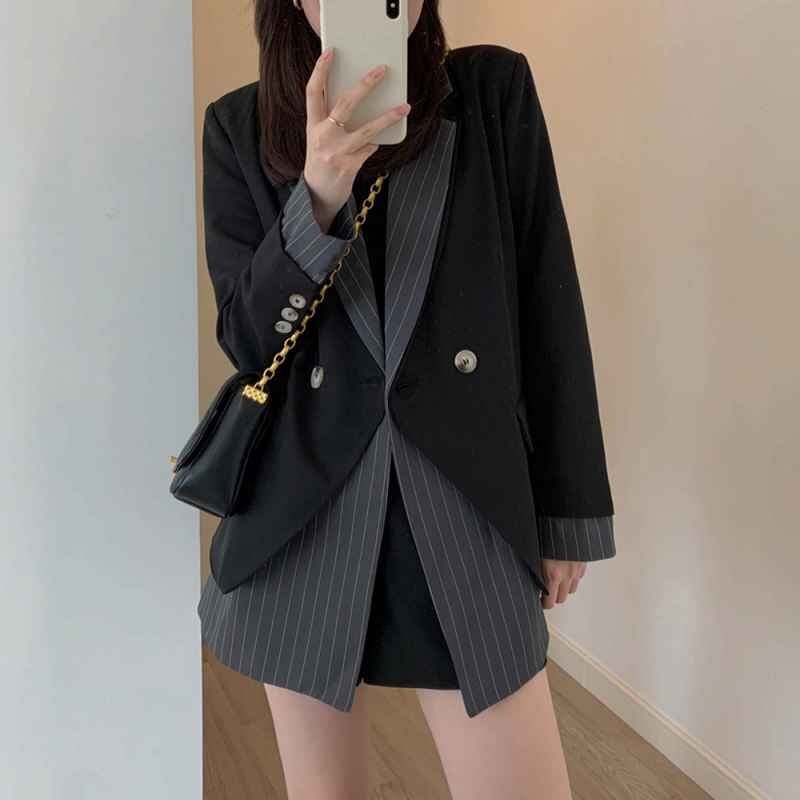 フェミニンさとレトロな雰囲気を併せもつレイヤード風テーラードジャケット