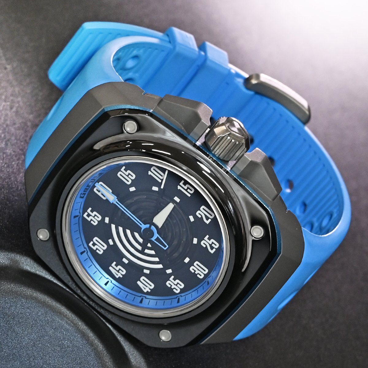 | 素材 | セラミックベゼル、ピンストライプ状アノダイズド・アルミ、ブラスト仕上げのチタンケース |