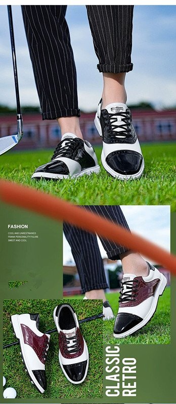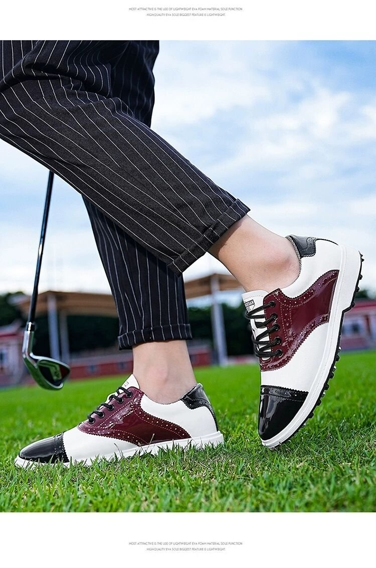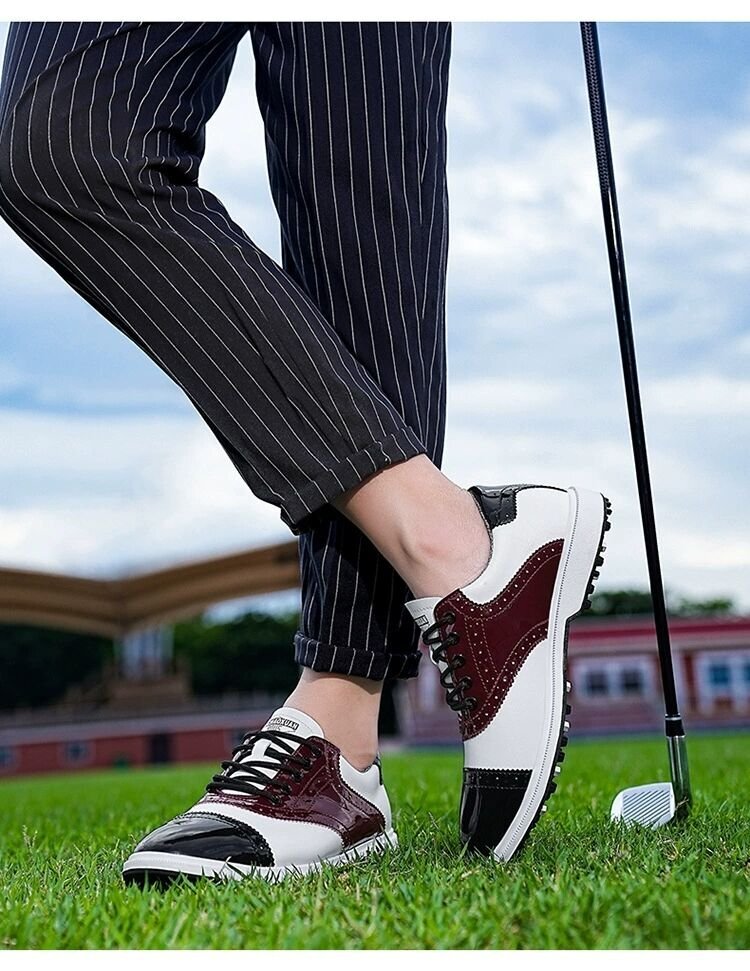 GRF-8668/45白赤 絶賛39-47選 ゴルフシューズ スポーツシューズ メンズ ソフトスパイク イギリス風 フィット感 防水 スニーカー 紳士靴