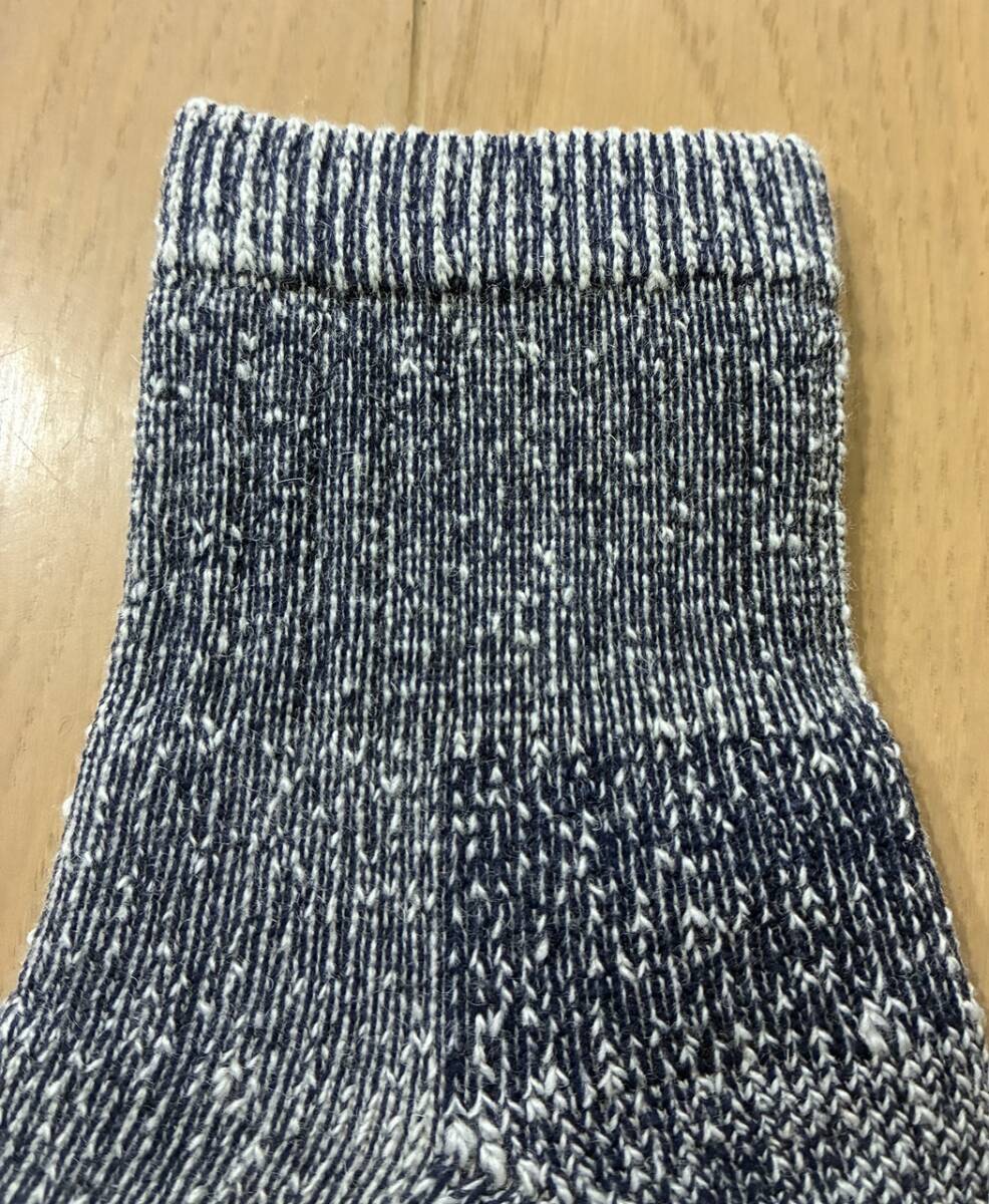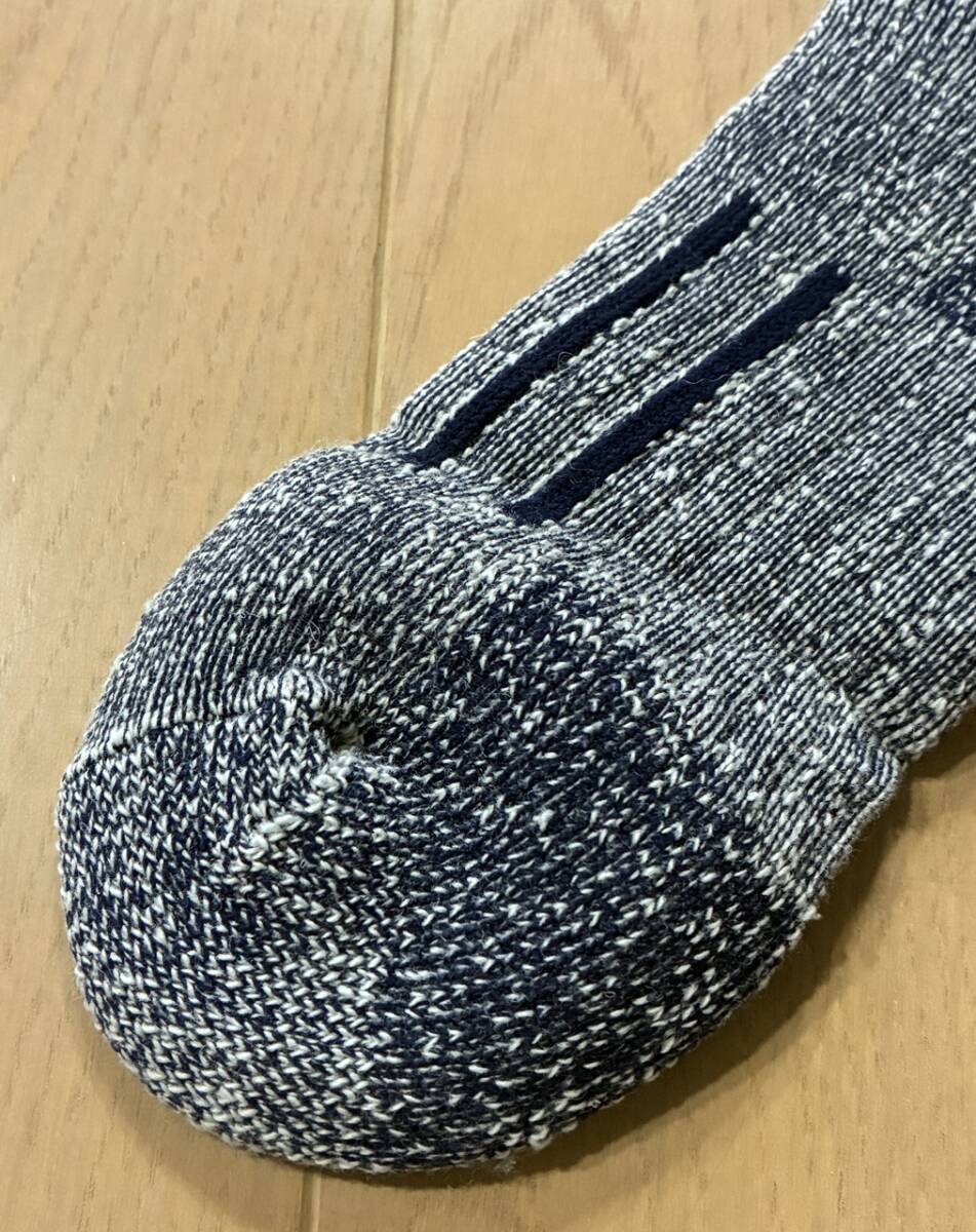 ウール80%/スパンデックス20%のやや厚手のトレッキングソックスです。
