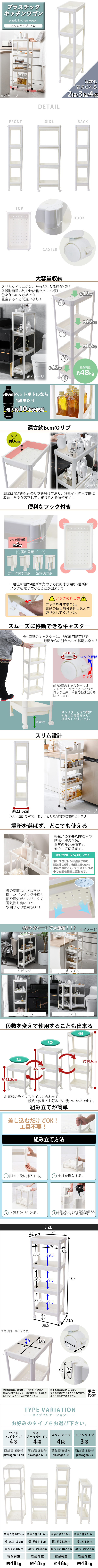 | 商品名 | 送料無料 ワゴン キッチンワゴン プラスチック キャスター 約23.5×38.5×103cm 段数変更 2段 3段 4段 スリムタイプ プラスチックワゴン テーブルワゴン 収納ワゴン 総耐荷重約48kg スリム フック 収納ラック 隙間 キッチン キッチン収納 洗面所 リビング トイレ plawagon34 |