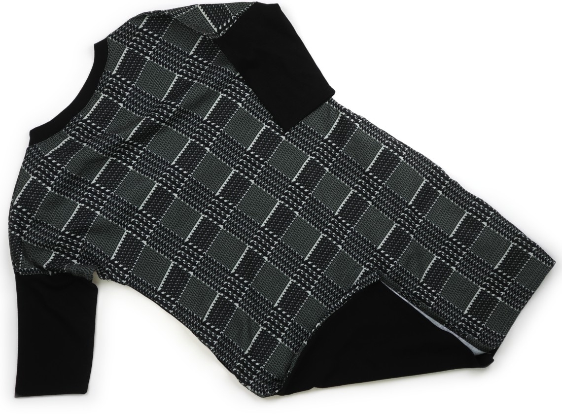サイズ表記はありませんが、実寸では裄丈約57 cm、胸囲約51cm、後中心のネックポイントから着丈約93cm。ポリエステル・レーヨン素材の薄手の生地です。胸の切り替え部分に授乳口の横向きファスナーがあります。使用感はありますが、目立つ汚れはなくまだまだお使い頂けそうです。
