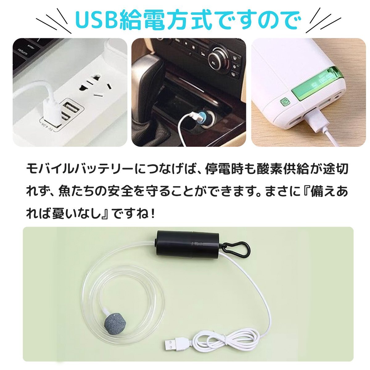 【クリックポスト】エアーポンプ 小型 USBタイプ 水槽 エアポンプ 空気ポンプ エアレーション 熱帯魚 水草 釣りに ●送料無料