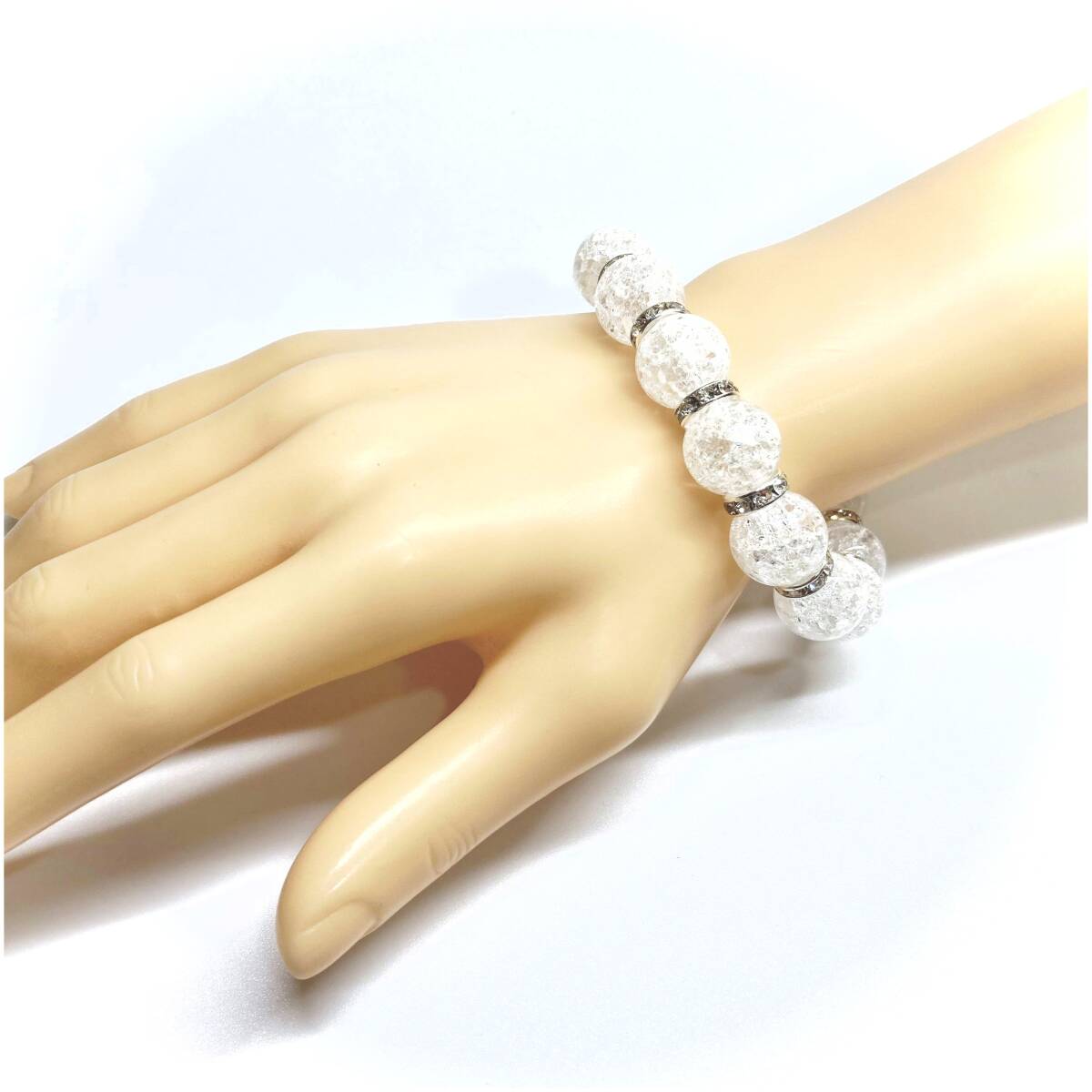 パワーストーン ブレスレット クラック水晶 14mm 天然石ブレス (シルバー) 開運 浄化 数珠ブレス メンズ 男性 プレゼント 14ミリ