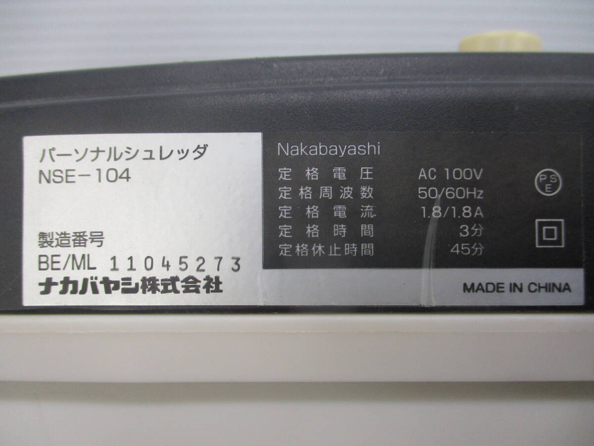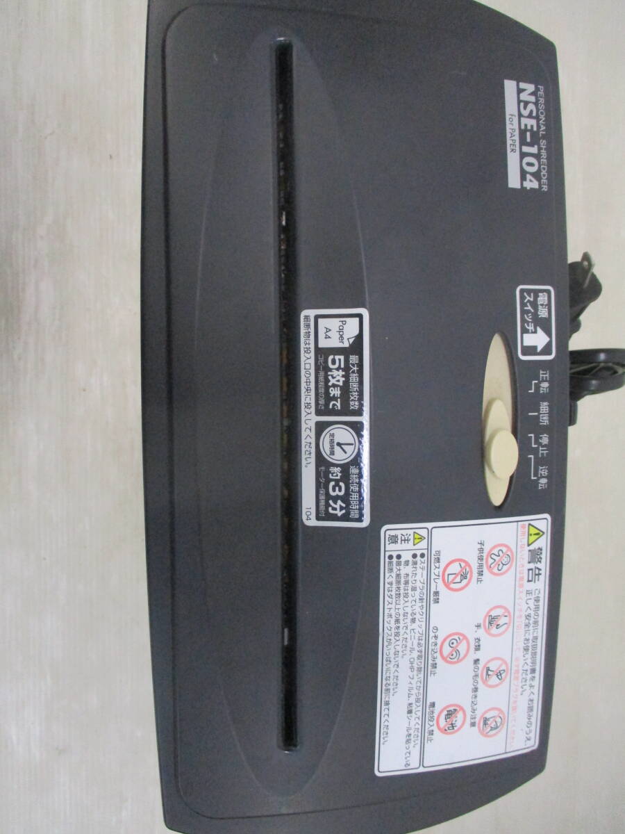 湘□100/シュレッダー/ナカバヤシ/NSE-104/最大細断枚数5枚/小型/動作確認済み/中古品/8.1-Z-1674-OH