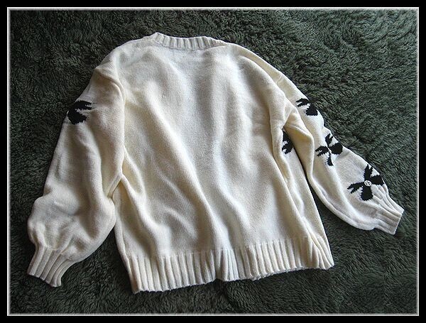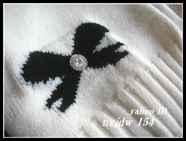 ◆Rose◇ゆったりワンサイズ・大人フェミニン♪編み込みリボンが可愛いカーデジャケット/黒×アイボリー