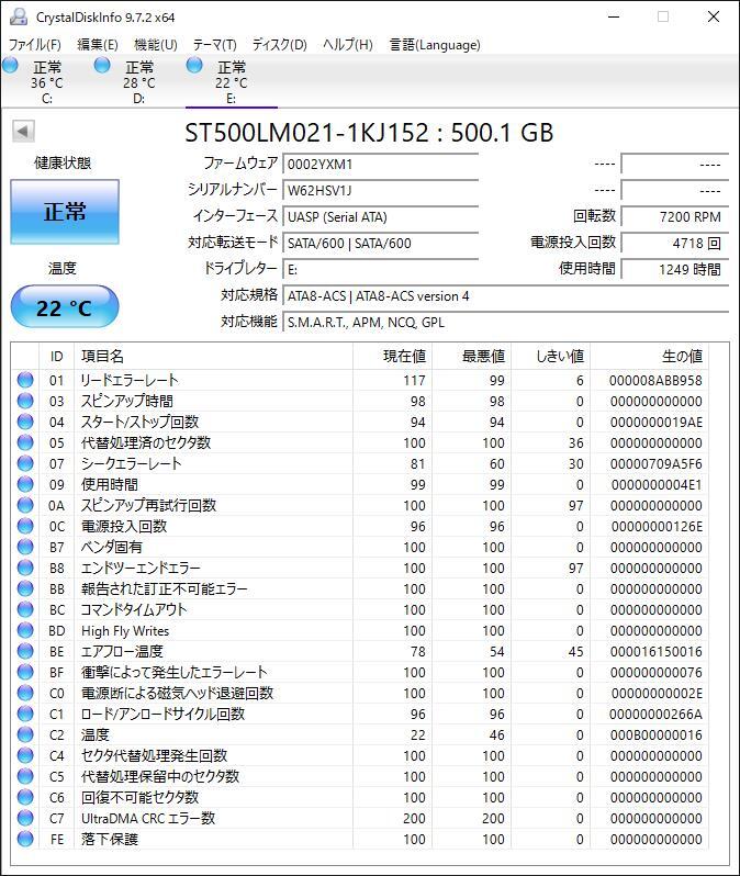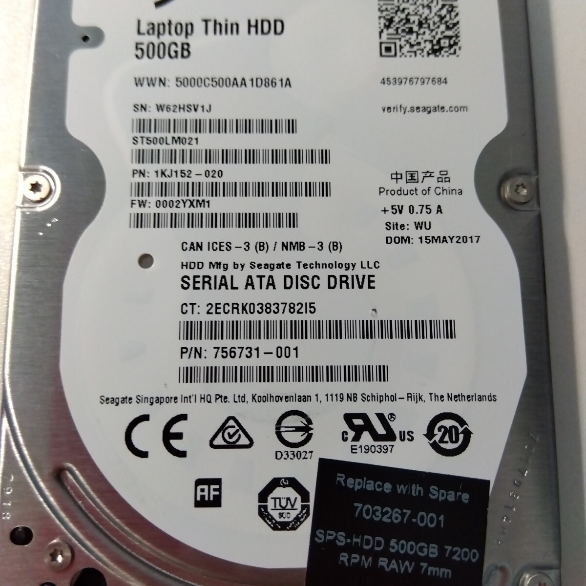 HDD 500GB 2.5インチハードディスク / Crystal DiskInfo 正常 / #440 / Seagate / ST500LM021-1KJ152