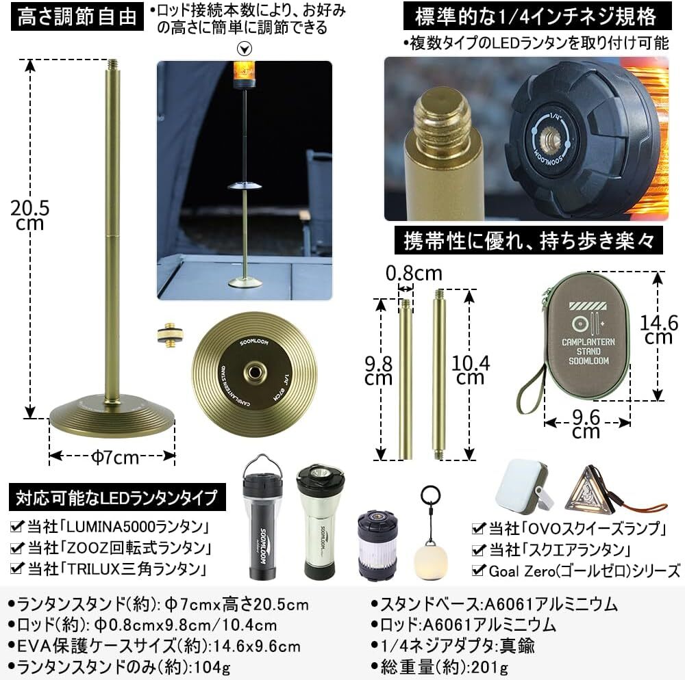 Soomloom キャンプランタン スタンド 1/4 インチ ネジ Goal Zero 2way LED Lumina Helio ZOOZ高さ 延長 可能 軽量 EVA 収納ケース 付き