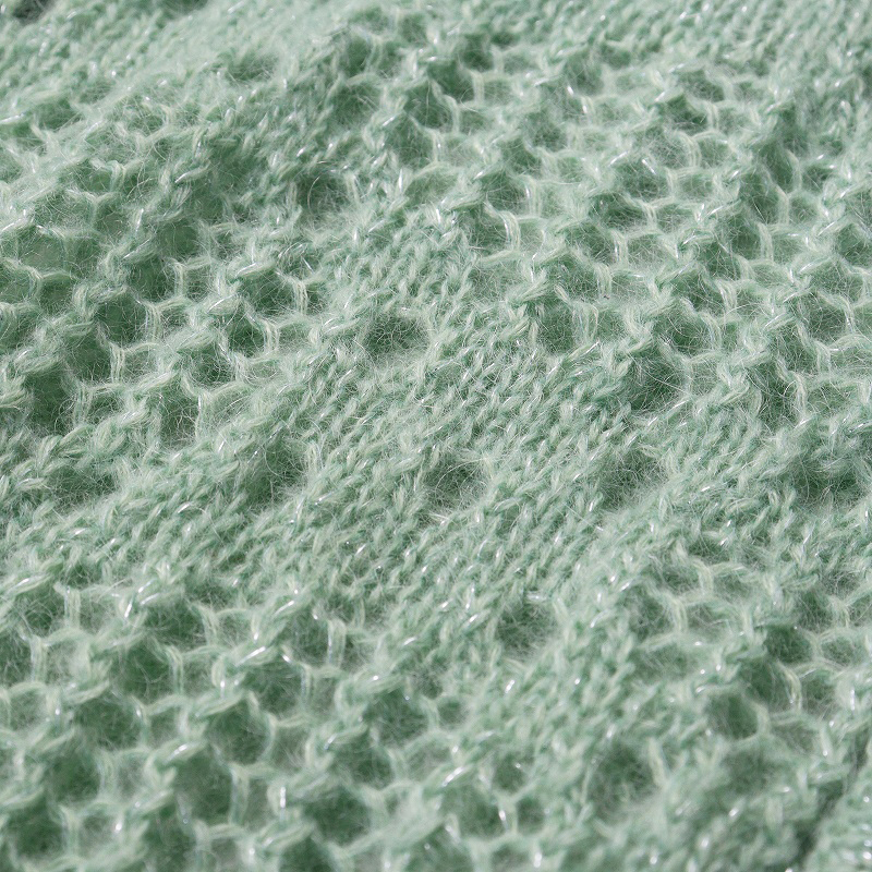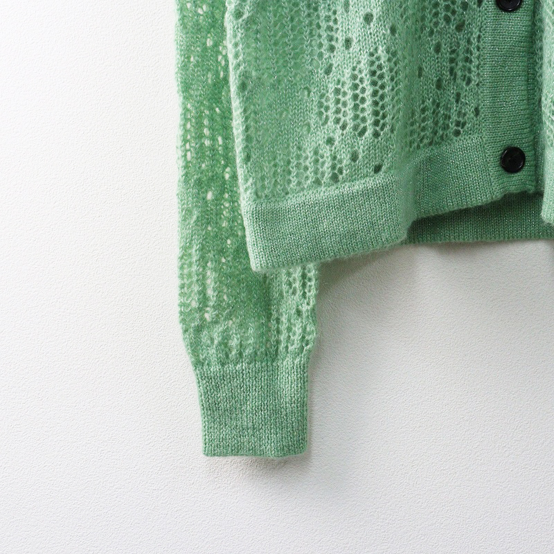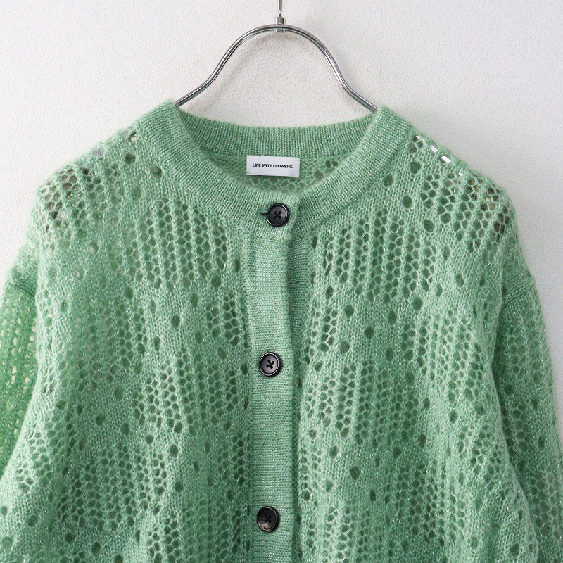 美品 ロイスクレヨン ライフウィズフラワーズ Lois CRAYON LIFE WITH FLOWERS ラメ入透かしニットカーディガン 1 緑┃【2400014737875】