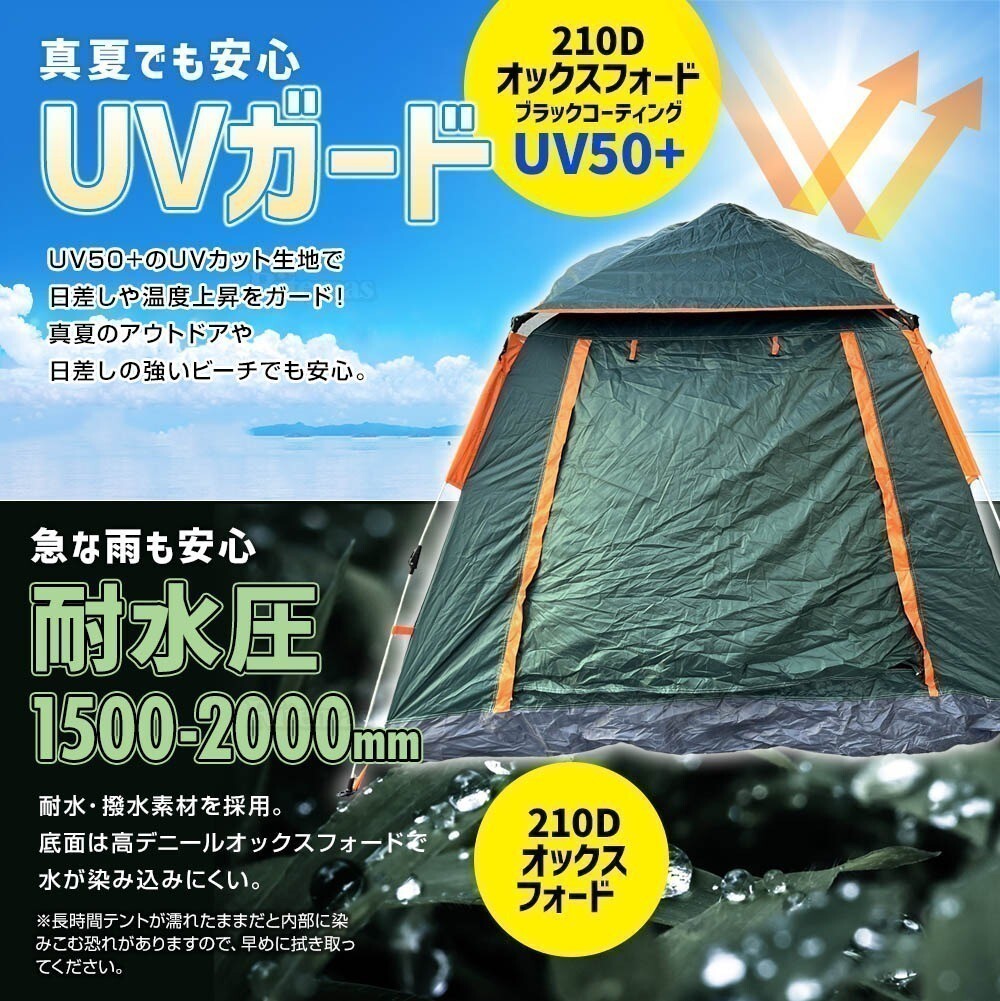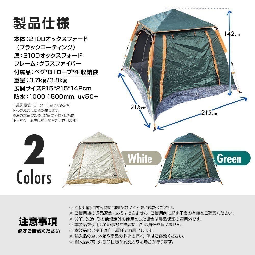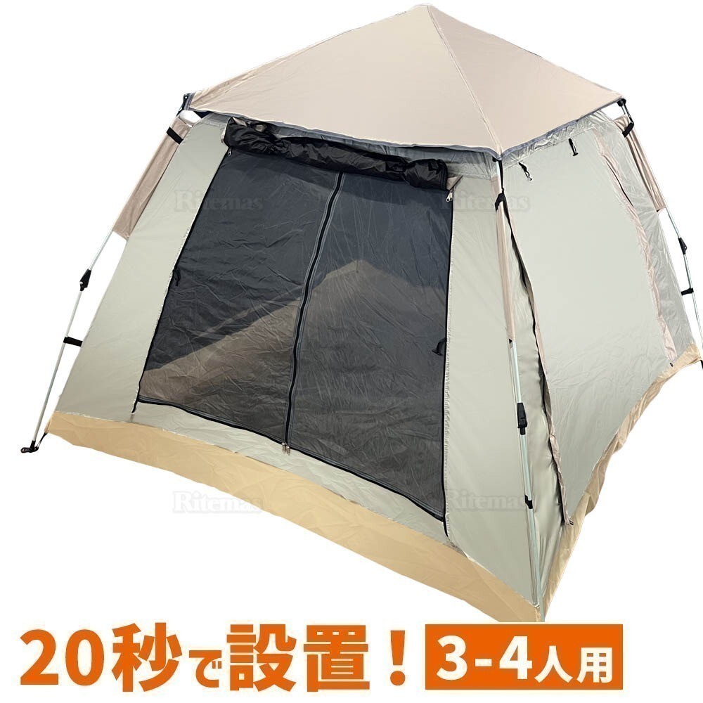 ドームテント ワンタッチテント 大型 テント 3~4人用 ファミリー キャンプ アウトドア フェス レジャー 用品 簡単設置 収納袋付 白