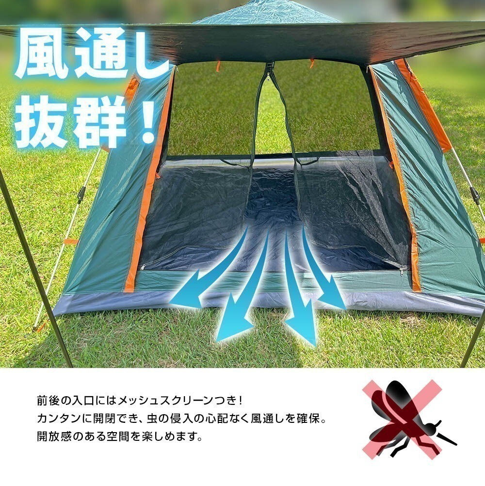 ワンタッチで簡単に設置可能な2窓2ドアのドーム型テント(3~4人用)