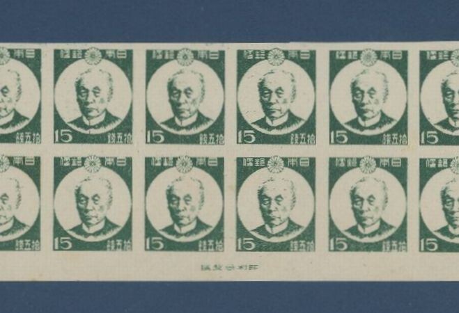 ☆出品商品名→ 印刷局銘板付『第1次新昭和切手/前島密』15銭/20B NH美品