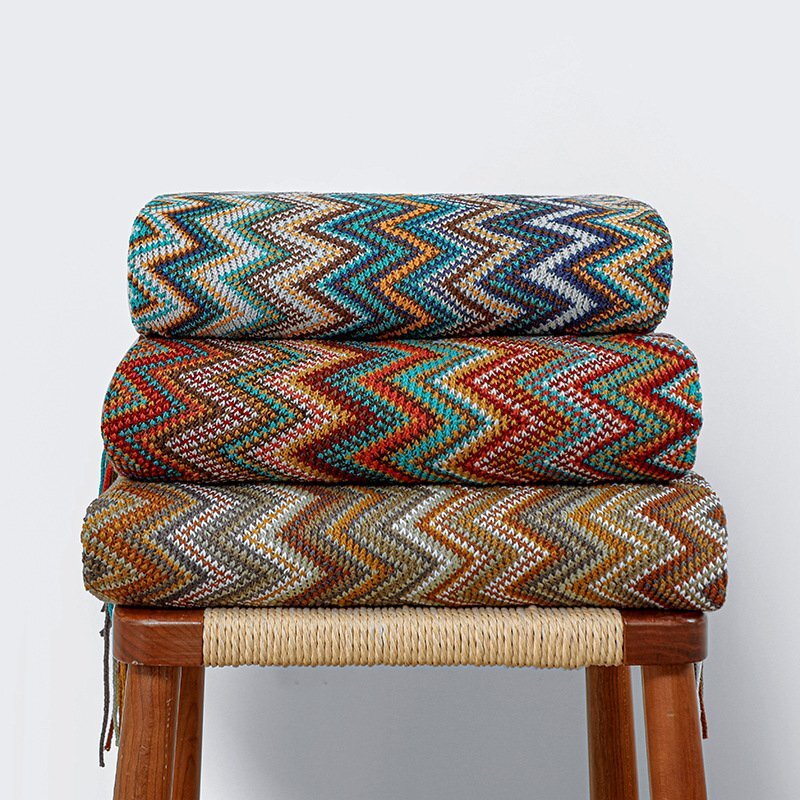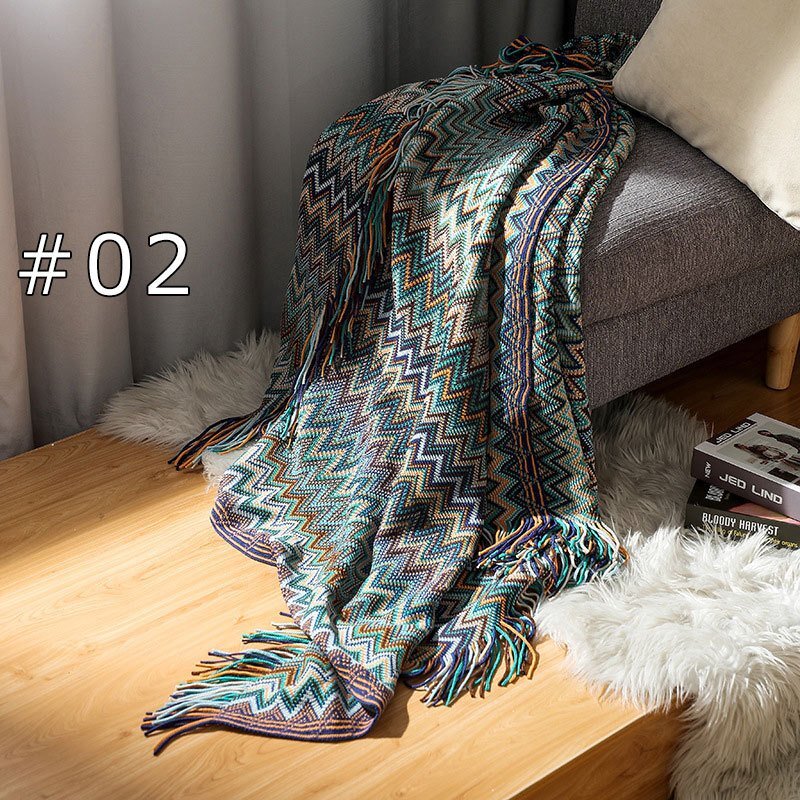 毛布 ブランケット 大判 北欧 ニット ボヘミアン柄 肩掛け 着る毛布 プレゼント 秋冬用 洗える 防寒 通年使用フリンジ付き130*170cm ☆#02