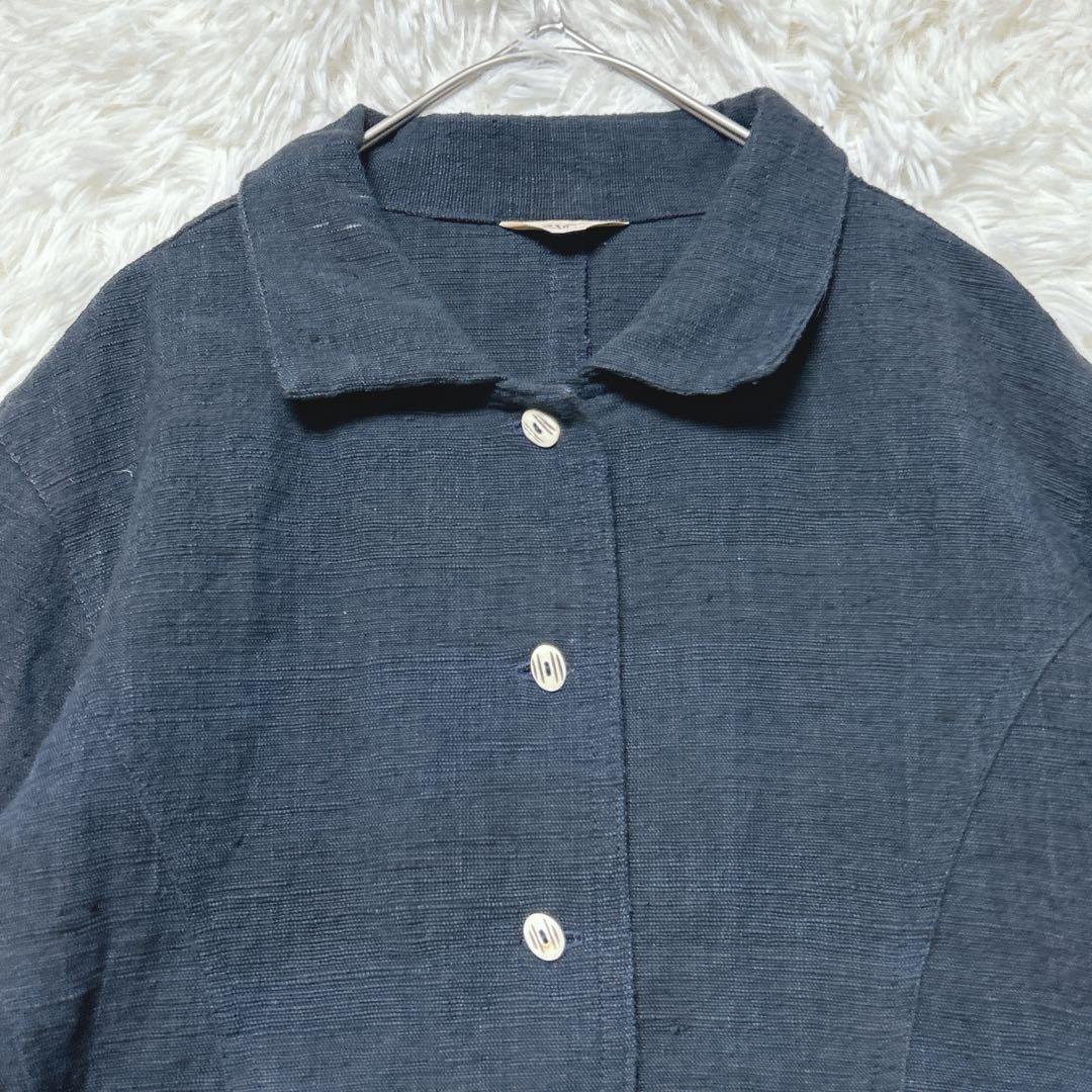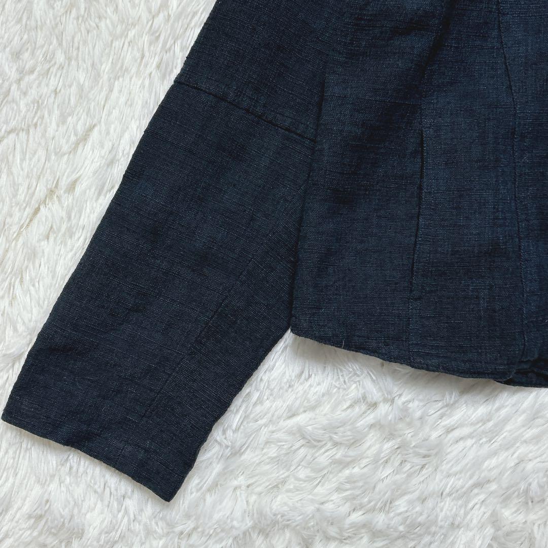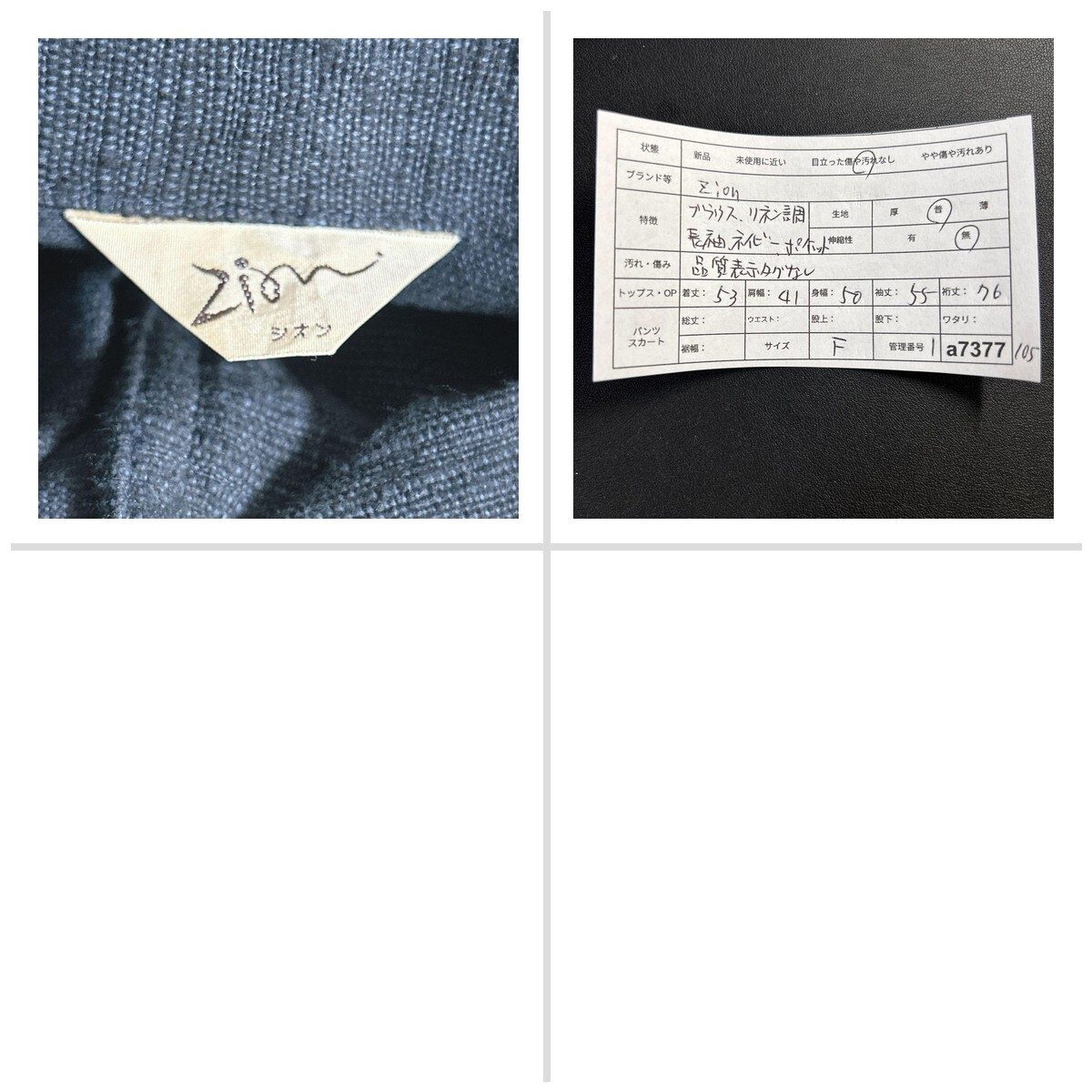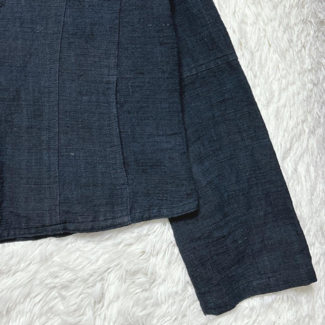 ジオン ジャケット ブラウス リネン調 ネイビー F 長袖 ポケット付き CD9153