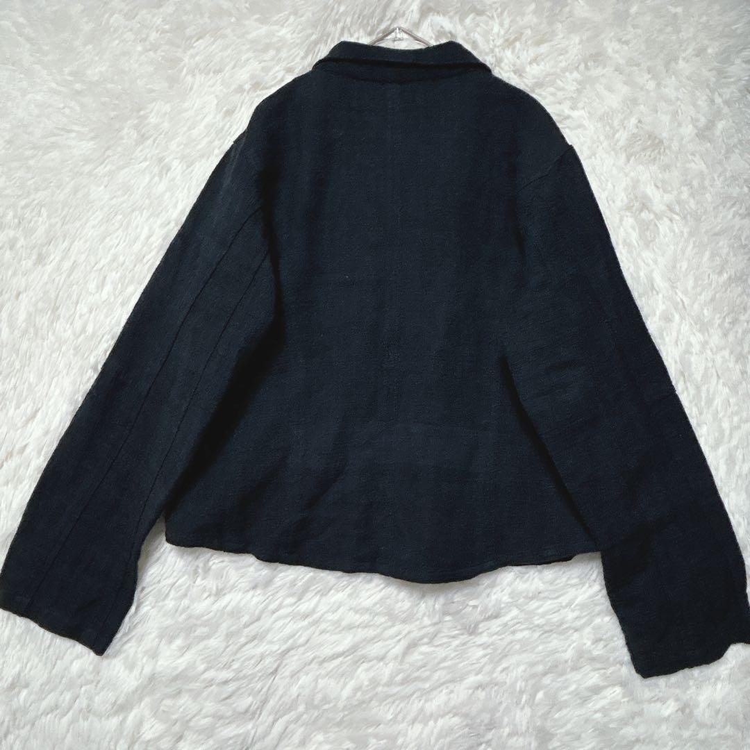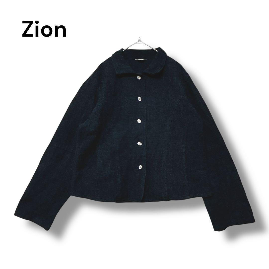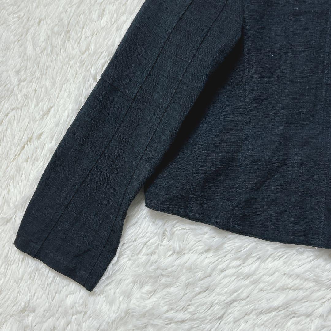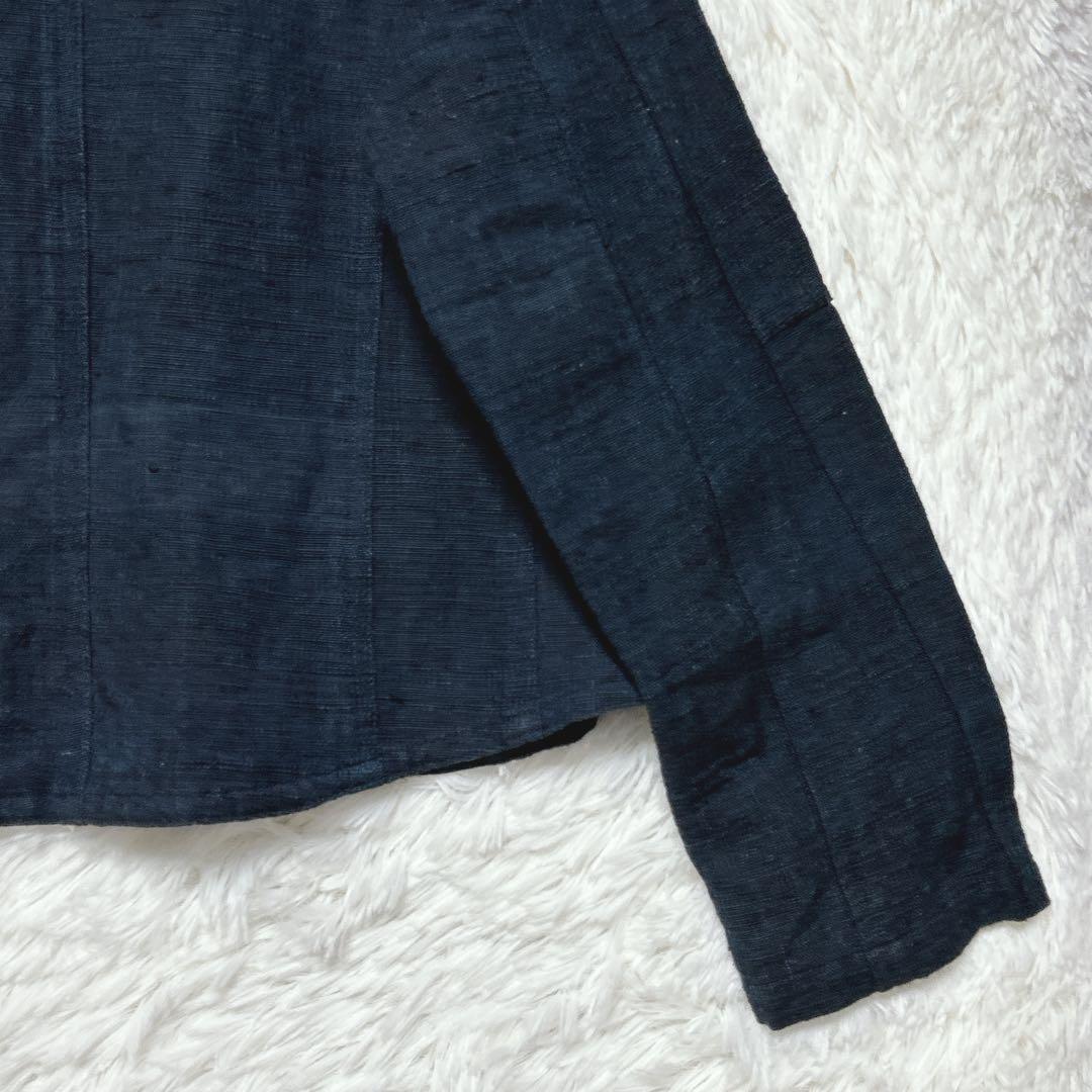 ジオン ジャケット ブラウス リネン調 ネイビー F 長袖 ポケット付き CD9153