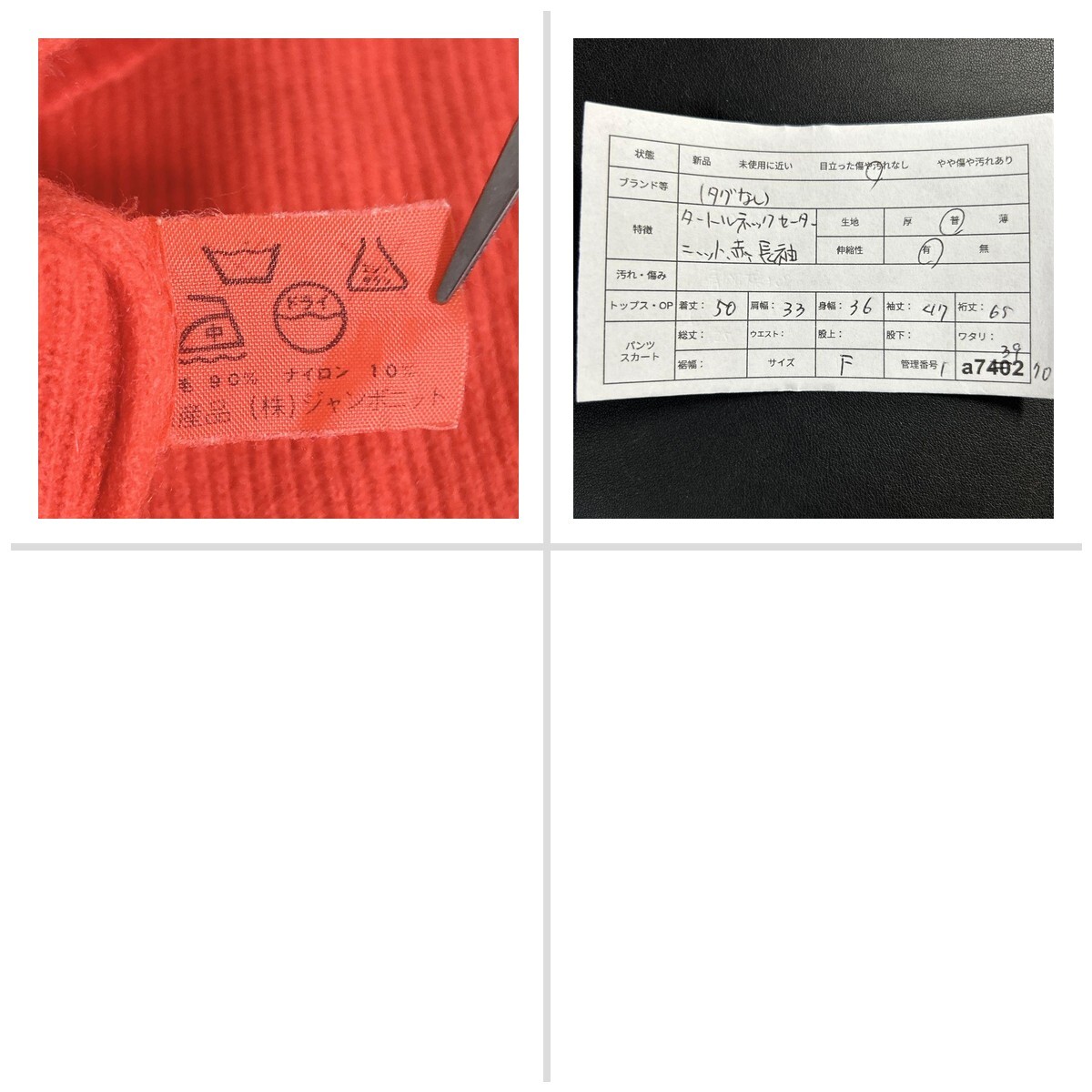 レディース タートルネックセーター ニット F 赤 長袖 ストレッチ 日本製 1C4A04
