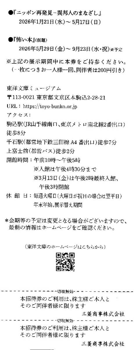東洋文庫ミュージアム 無料ご招待券★2枚★三菱商事優待券★有効期限:2026年6月29日まで(776)