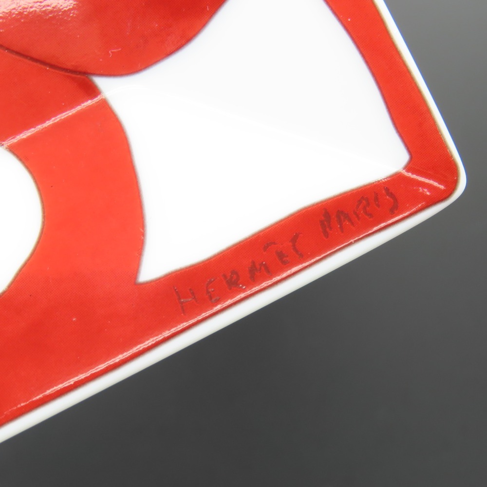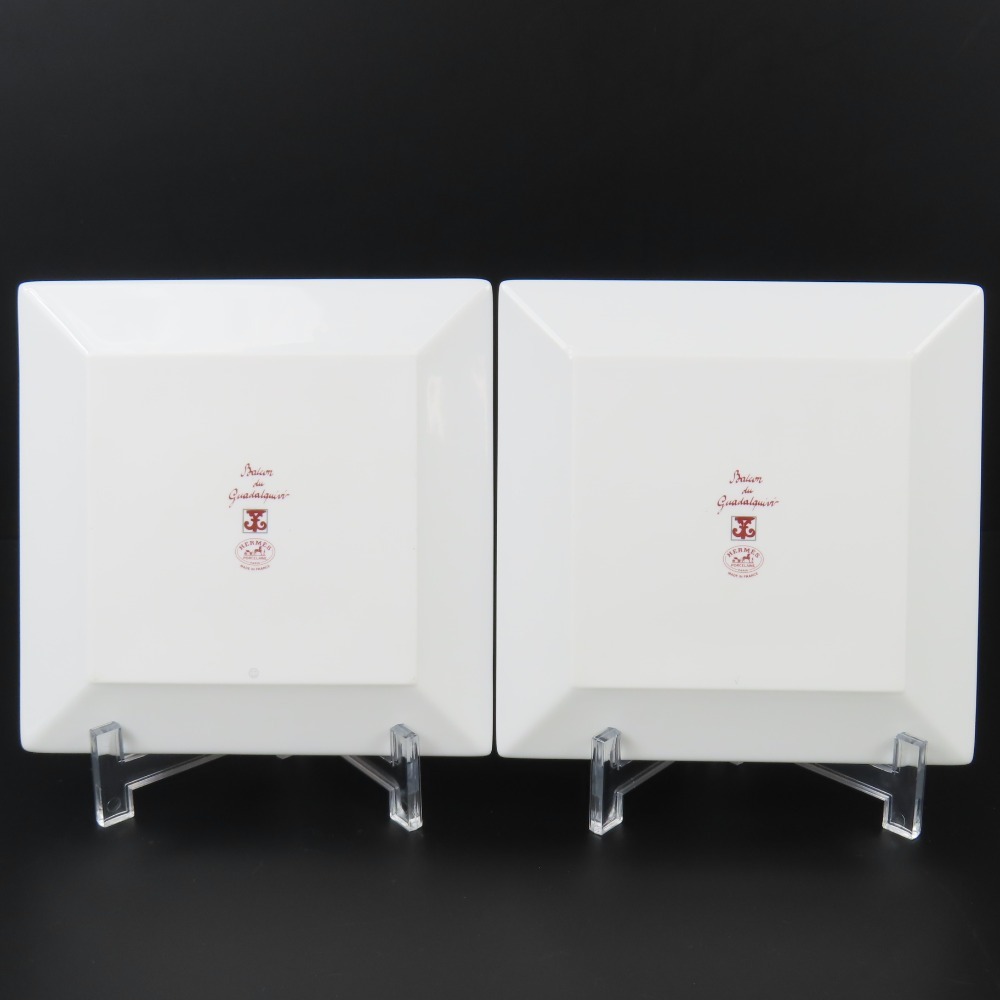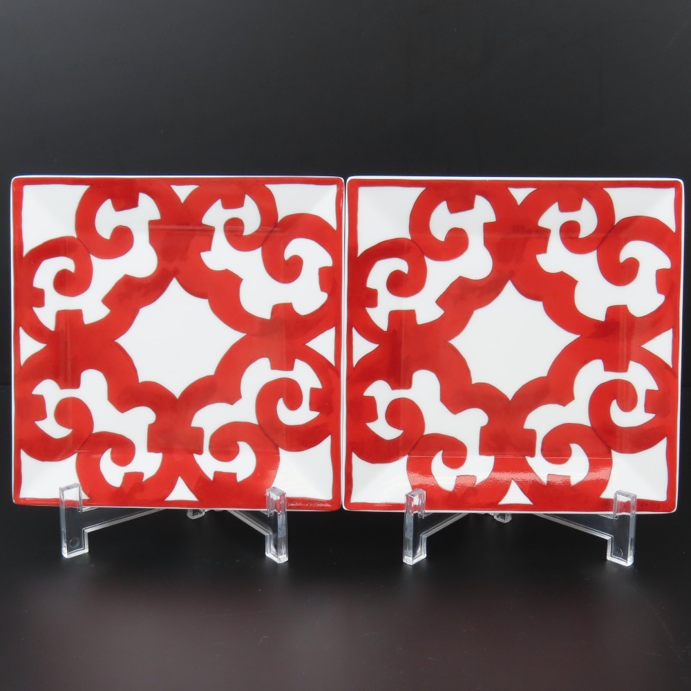 101274 HERMES エルメス 未使用品 ガダルキヴィール スクエアプレート 2点 15cm 食器 インテリア 皿 陶器 レッド