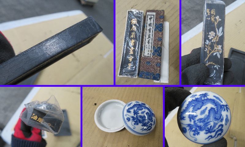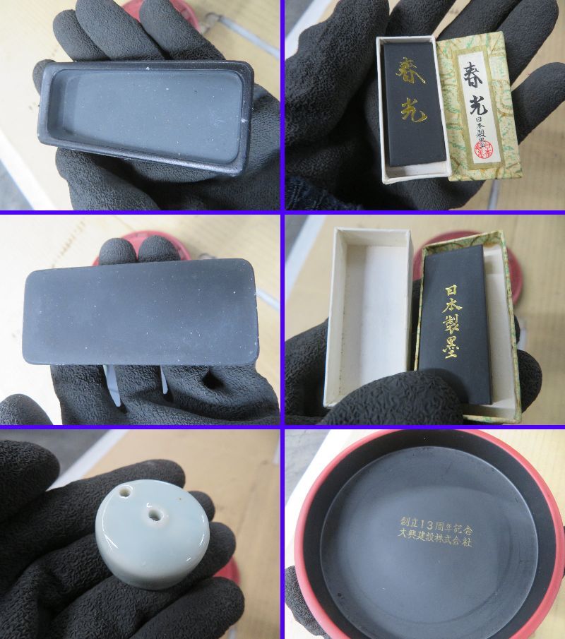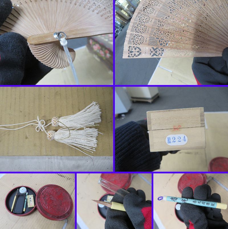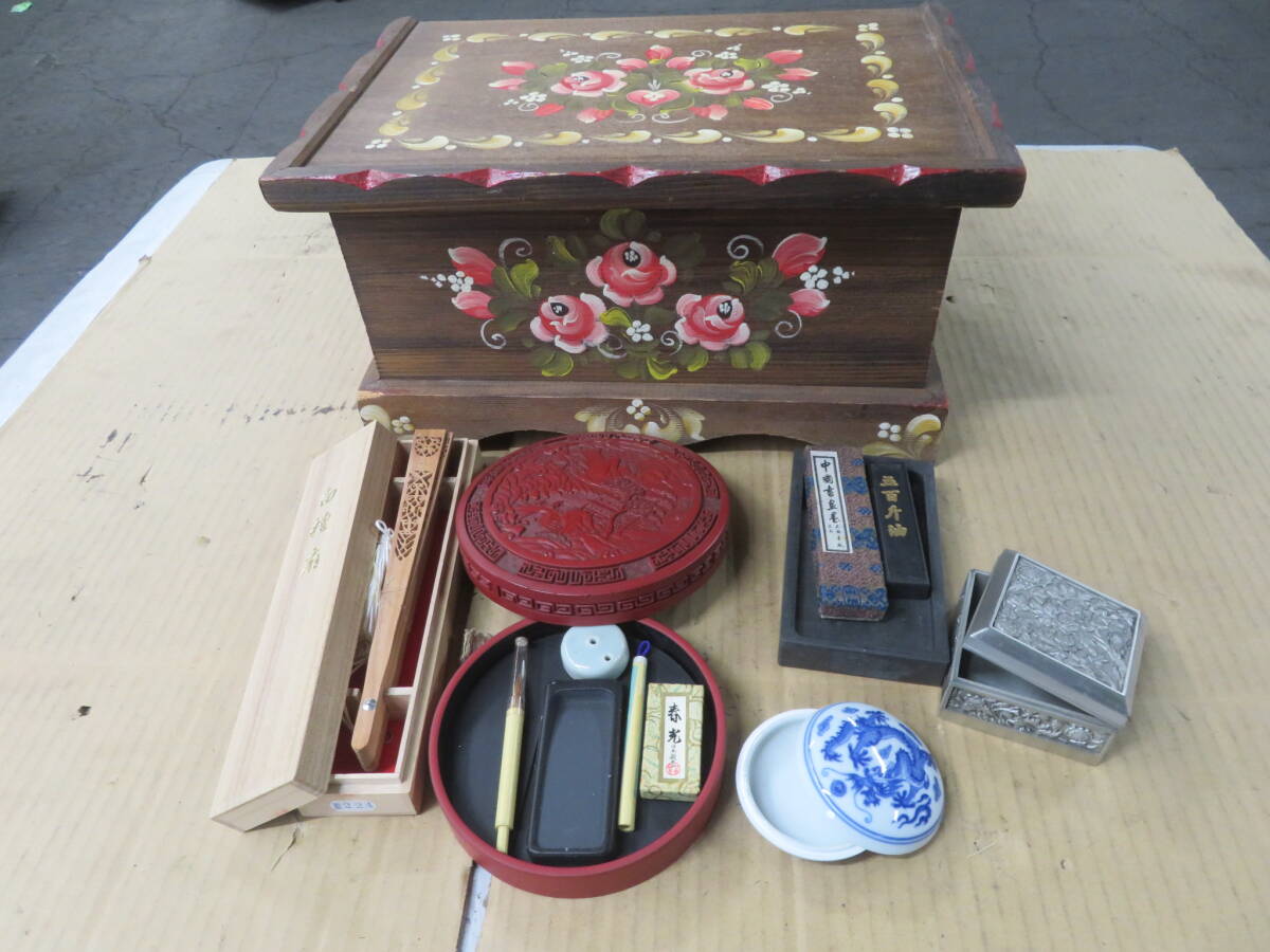U-410★小物☆色々 まとめて セット☆小物入れ/白檀扇/書道具/硯/墨/印泥入れ/ロイヤルセランゴール etc★中古品