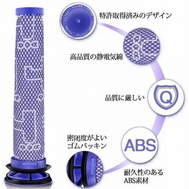 ※こちらの商品は互換品です。純正品とほぼ同じ機能がございますが,純正品ではございません。 Dyson(ダイソン)互換フィルターお得な2個セットです。 静電気綿の素材を使用している高品質商品。 古くなったフィルターの洗い替え用、交換用としてご利用ください。取付方法は写真をご参照ください。 ●材質 静電気綿、耐久性のいいABS素材、密度のいいゴムパッキン。 ●機能 掃除機の吸引力を増加し、細かいホコリやチリをしっかりと吸い取ります。 ●お手入れ方法 掃除の頻度や使用状況によりますが、2週間から1ヵ月ごとに水道水で洗浄してください。 水洗いでですすぎ洗いし、しっかりと水分をふき取り、風通しの良いところで放置してしかり乾燥させしてから、設置してください。 ※乾く前に本体に設置すると故障の原因になるので気を付けてください。 お客様の使用による故障については責任を負いかねますので予めご了承ください。 ●対応機種 V6 V7 V8 dc62 DC61 DC58 DC59 DC74 海外インポート品なので,ご理解の上ご購入ください。