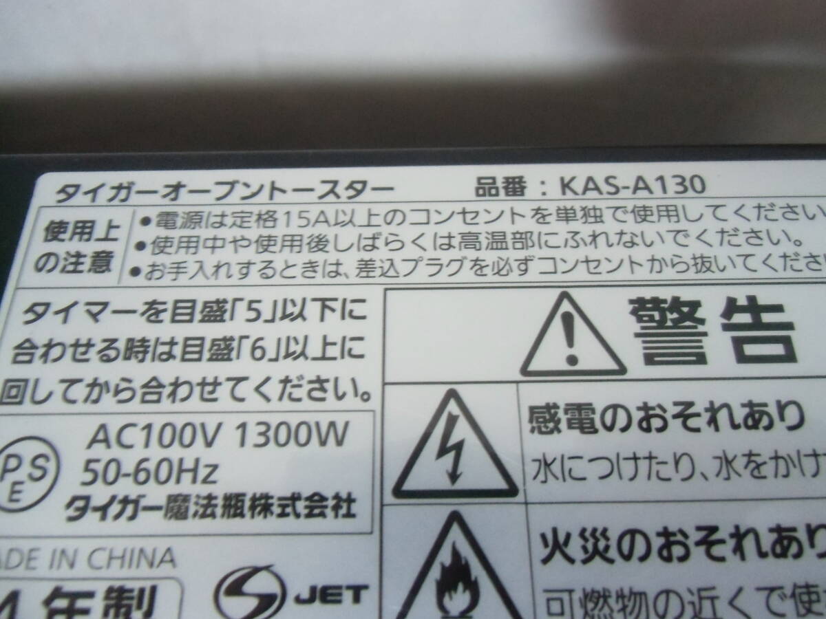 □タイガー オーブントースター KAS-A130 ブラック ワイド&ビック庫内 10インチ(約25cm)ピザ 大きな料理☆