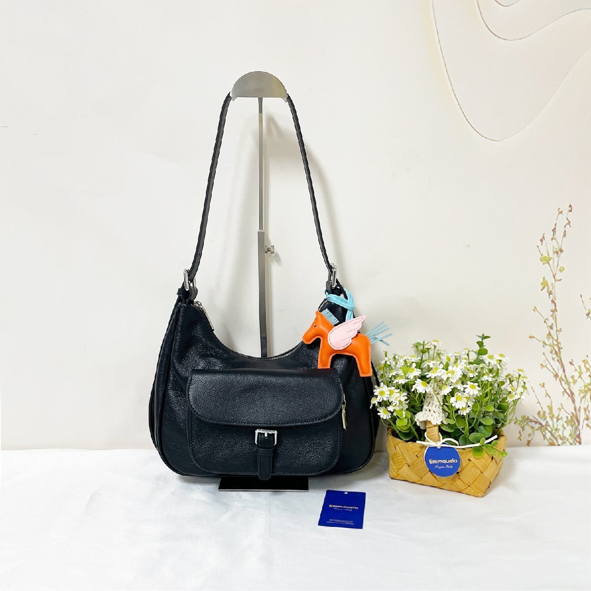 人気・ハンドバック 定価11万◆Emmauela・イタリア・ミラノ発◆牛革 レザー ソフト 光沢感 無地 高級 ショルダーバッグ 2way 肩掛け 通勤 OL