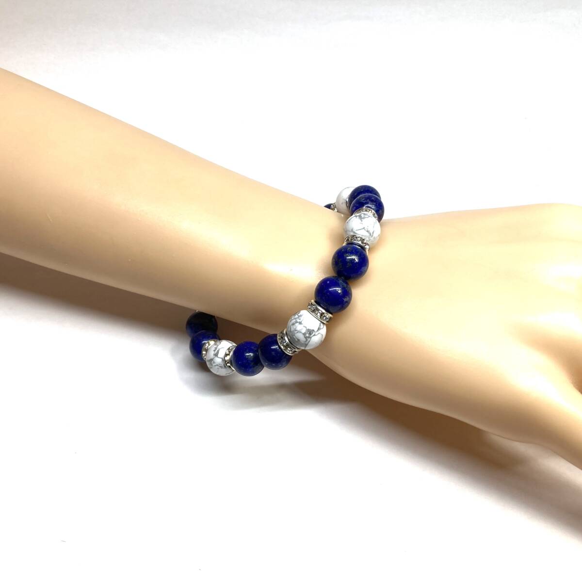 ラピスラズリ&ハウライト パワーストーン ブレスレット 天然石ブレス (シルバー) 10mm メンズ・レディース ストレス解消 ☆