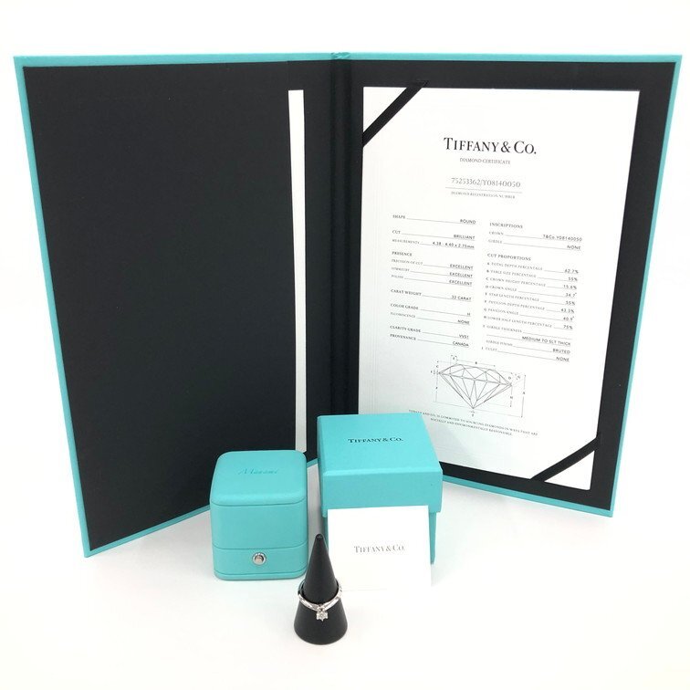 | TIFFANY&Co. ティファニー リング Pt950/75253362 D0.32ct刻印あり サイズ11号 総重量3.85g 箱・ケース・付属品あり【DLAE2004】 |